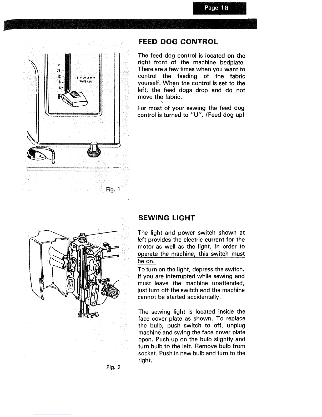 control is turned to "U". (Feed dog up)