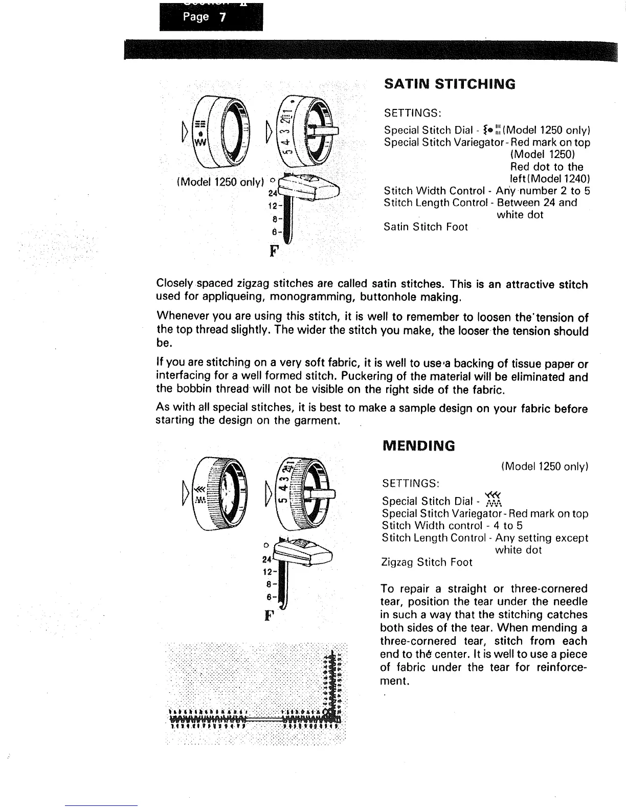 Special Stitch Dial- {e ',ll(Model 1250 only)