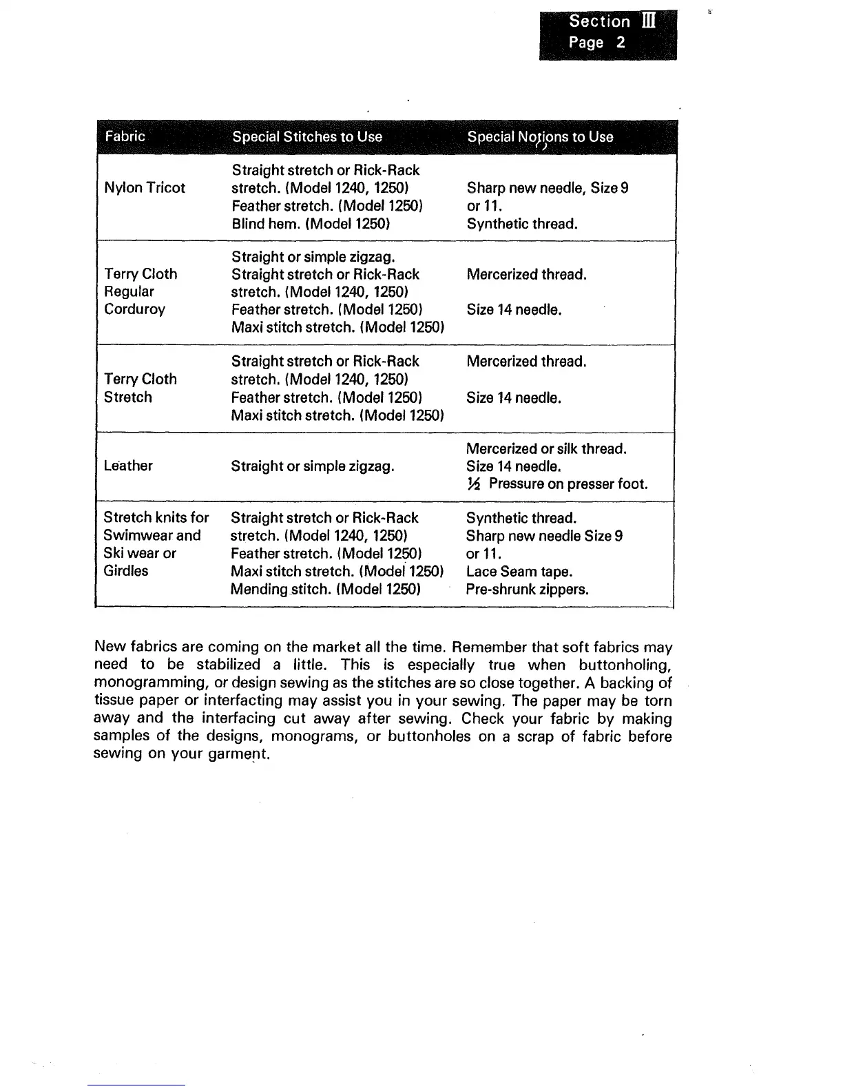 away and the interfacing cut away after sewing. Check your fabric by making