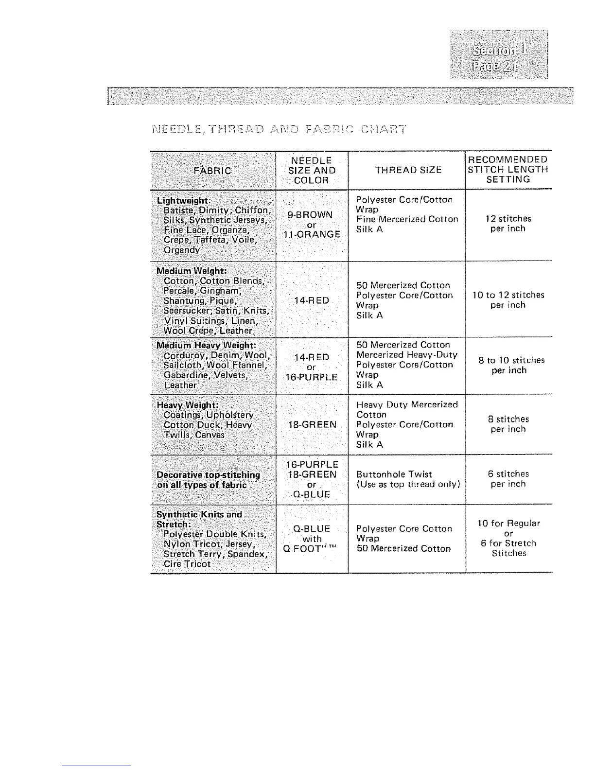 THREAD SIZE STITCH LENGTH