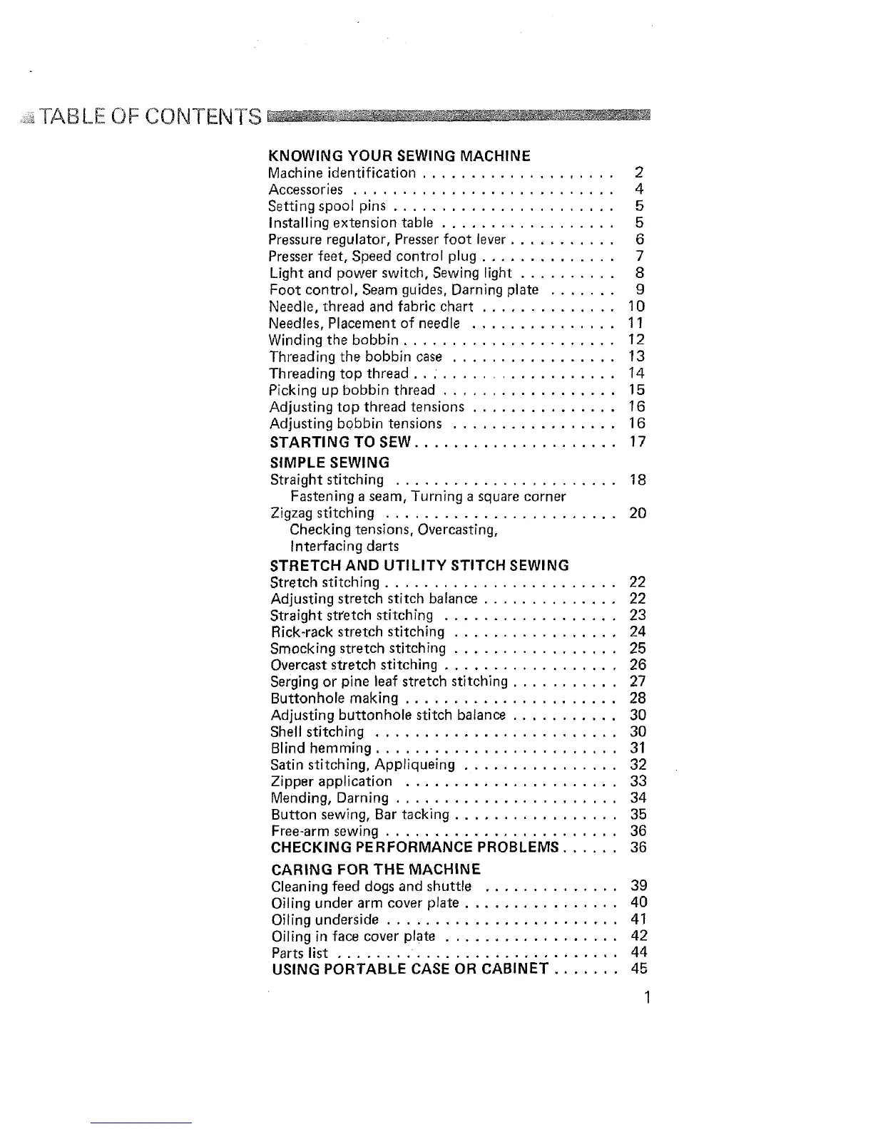 Adjusting top thread tensions ............... 16
