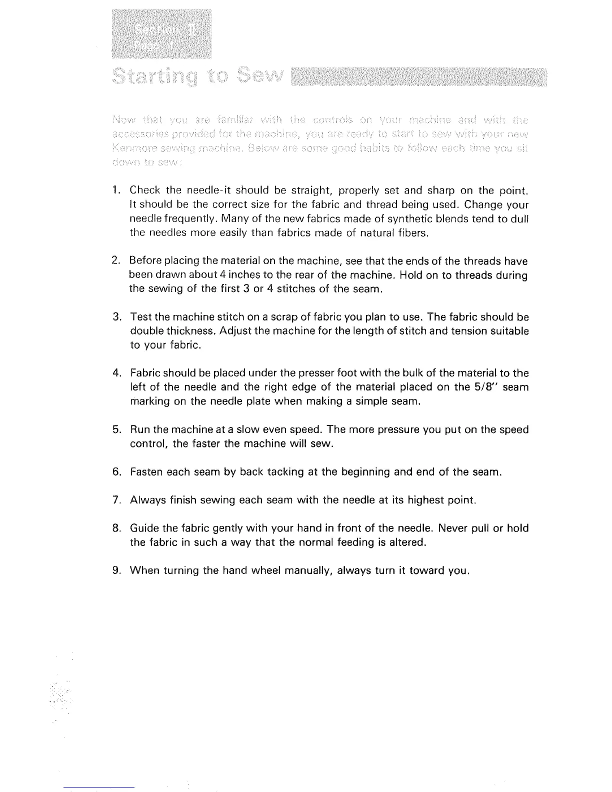 7. Always finish sewing each seam with the needle at its highest point.