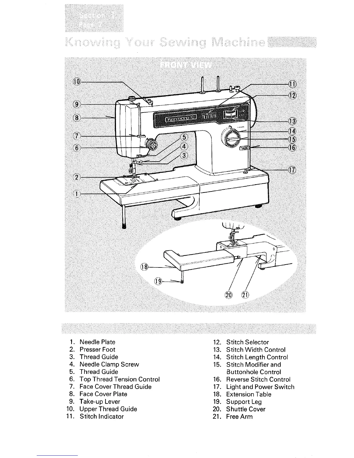 1. Needle Plate 12. Stitch Selector