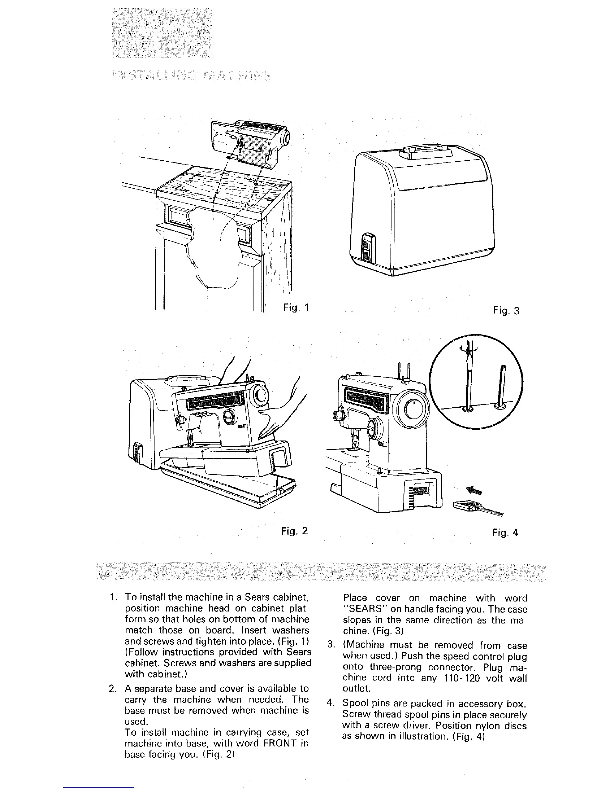 1. To install the machine in a Sears cabinet,