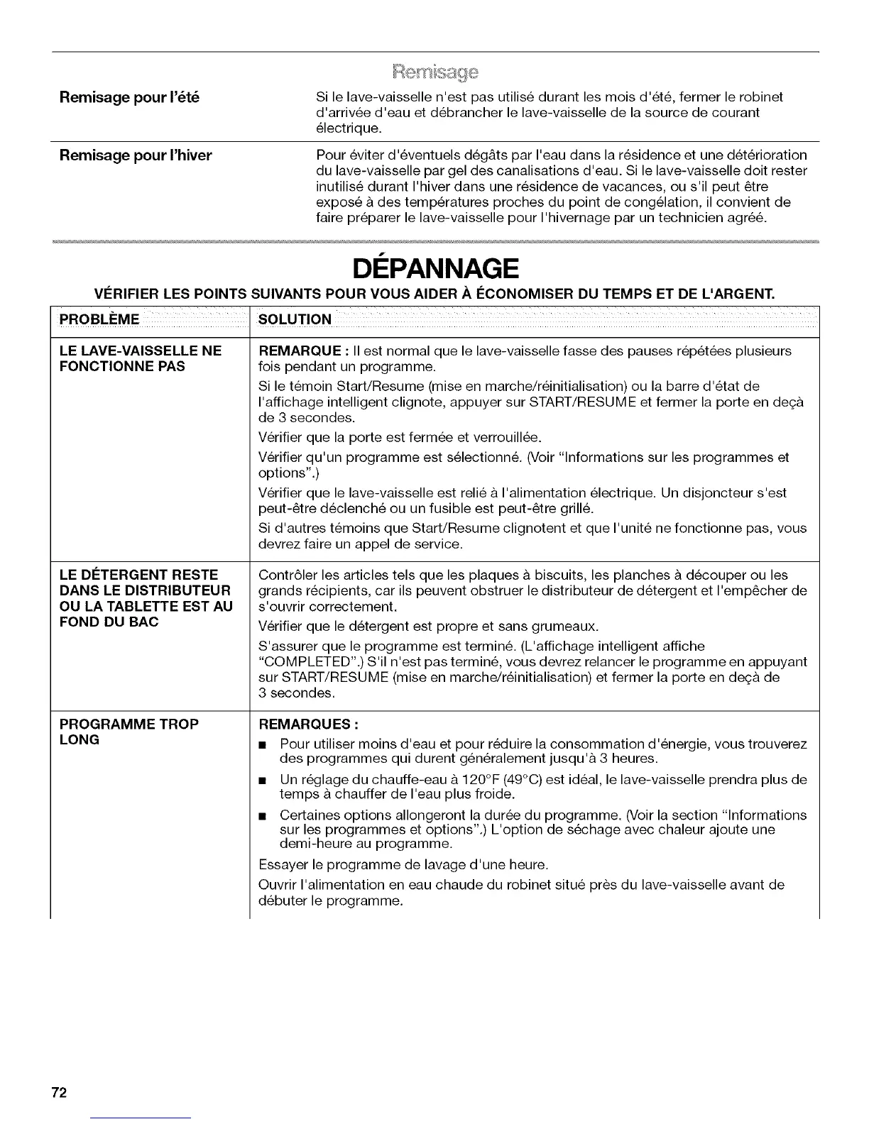 Remisage pour I'_t_ Si le lave-vaisselle n'est pas utilis6 durant les mois d'6t6, fermer le robinet