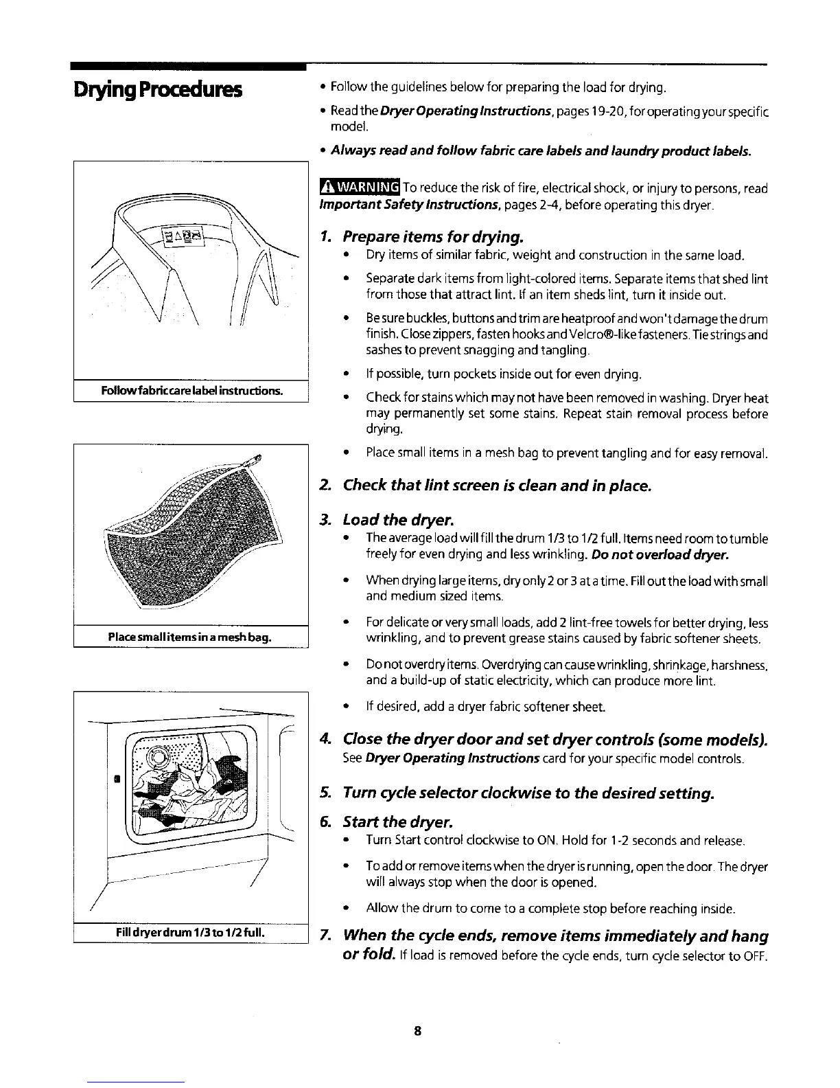 freely for even drying and lesswrinkling. Do not overload dryer.