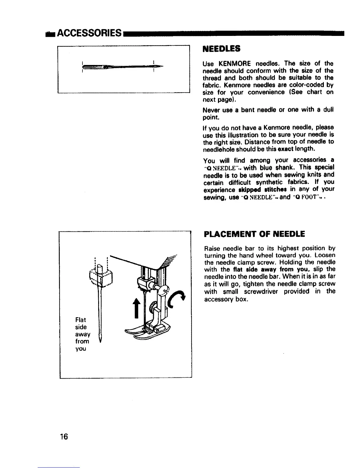 fabric. Kenmore needles are color-coded by