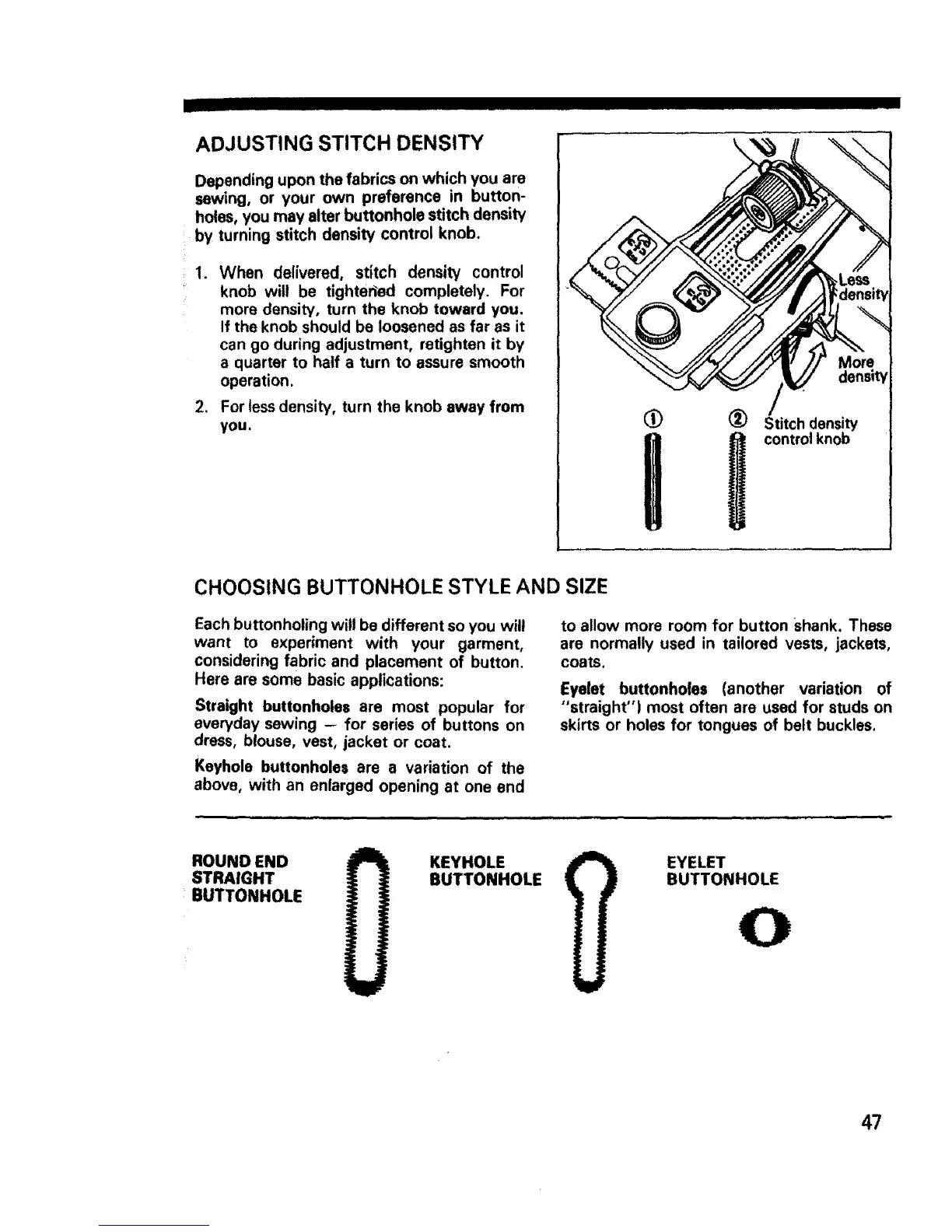 holes, you may alter buttonhole stitch density