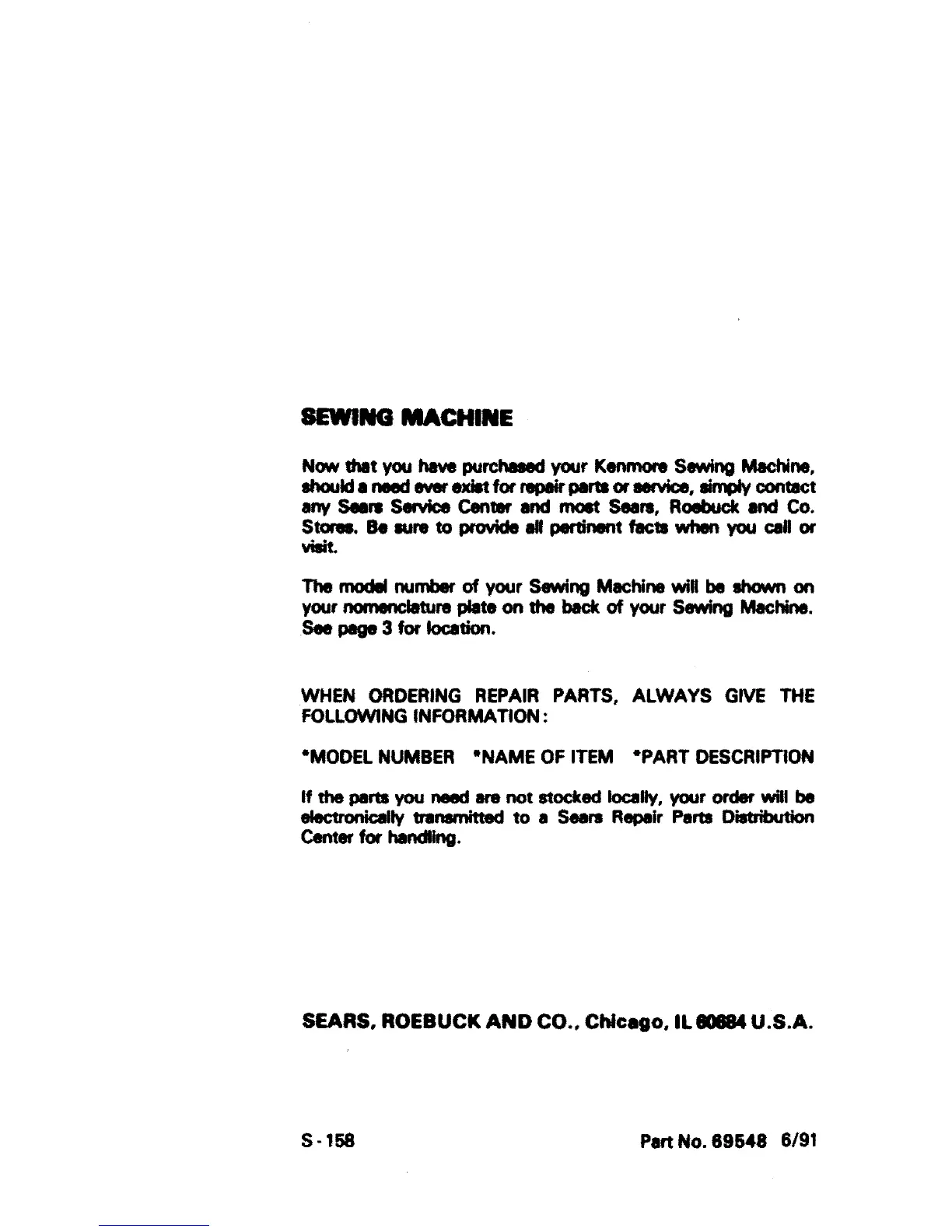 S - 158 Part No. 69548 6/91