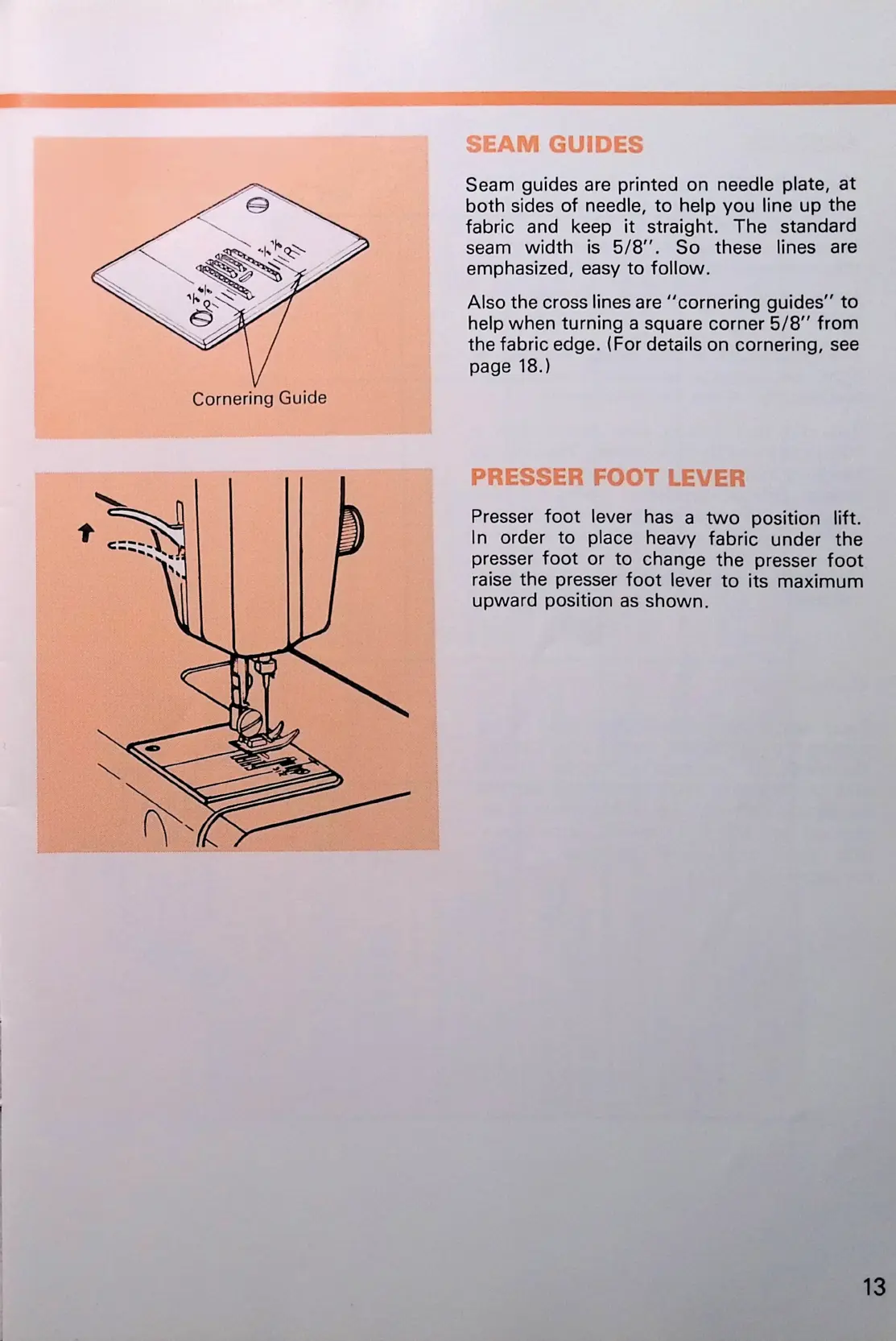 Kenmore 1350 - Seam Guides; Presser Foot Lever