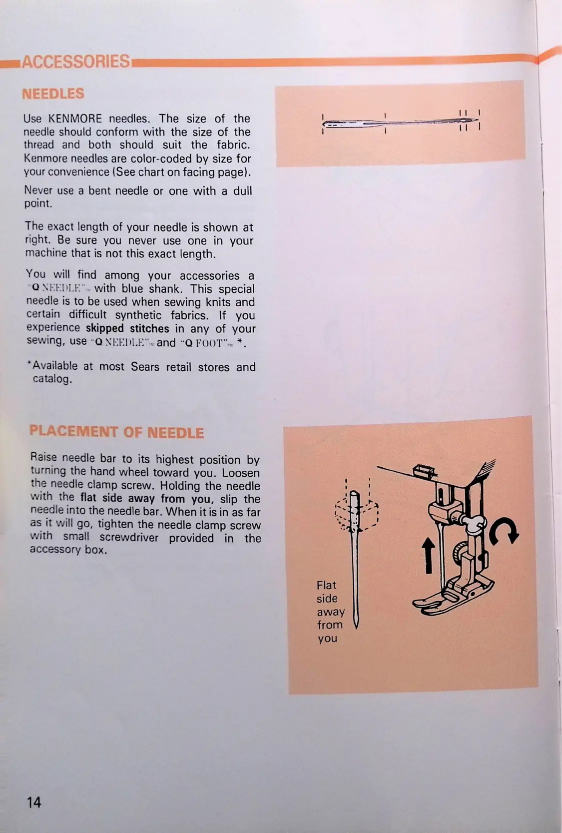 Kenmore 1350 - ACCESSORIES Needles; Placement of Needle