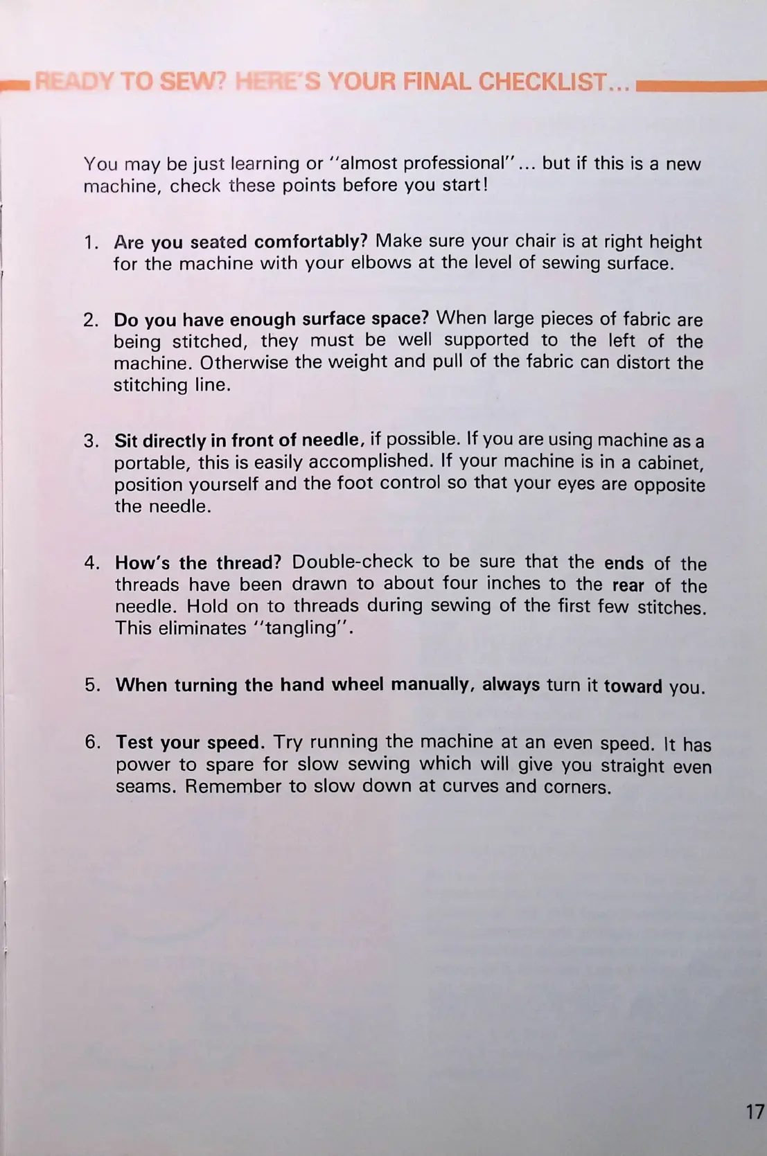 Kenmore 1350 - Chec List before Starting