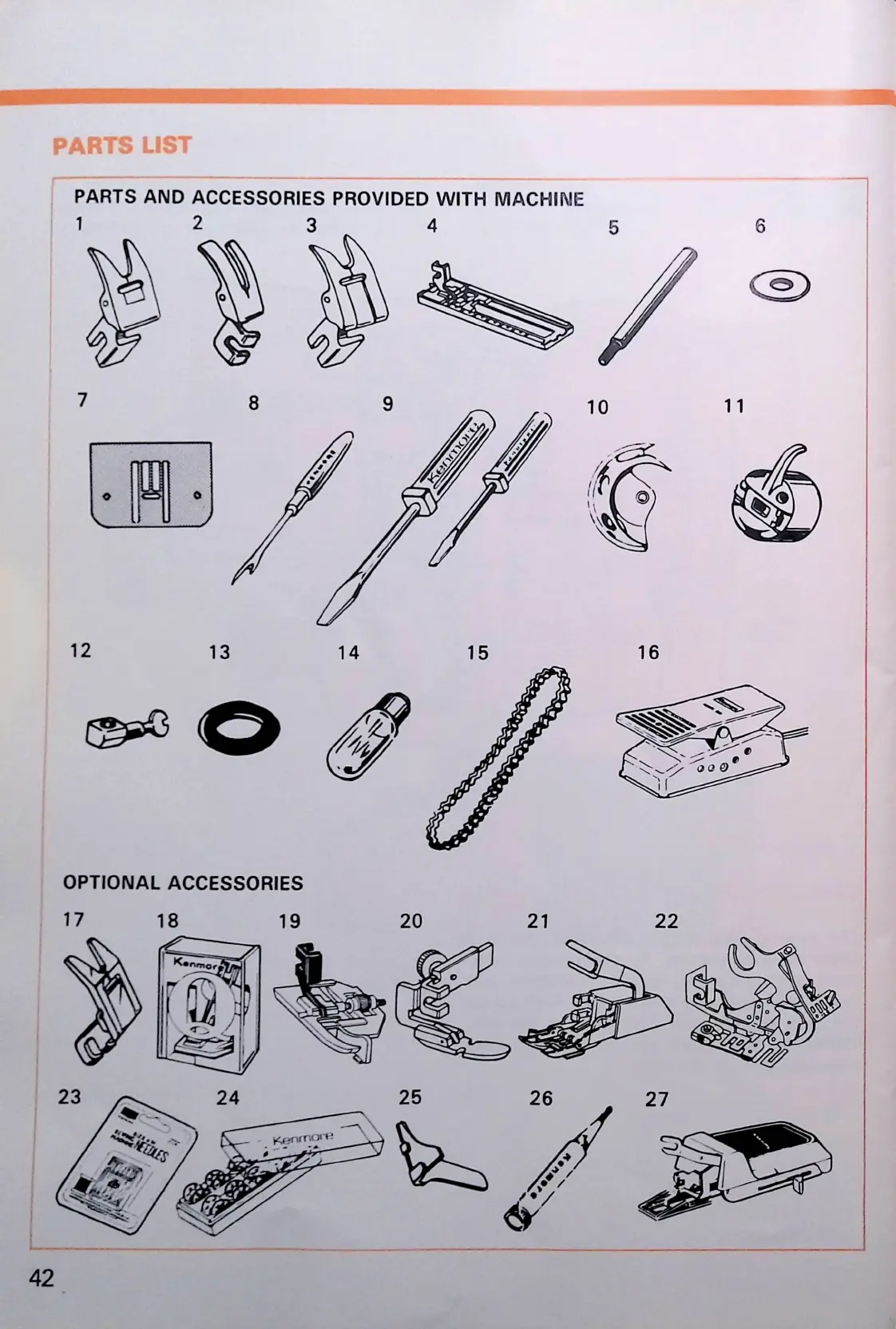 Kenmore 1350 - Parts List