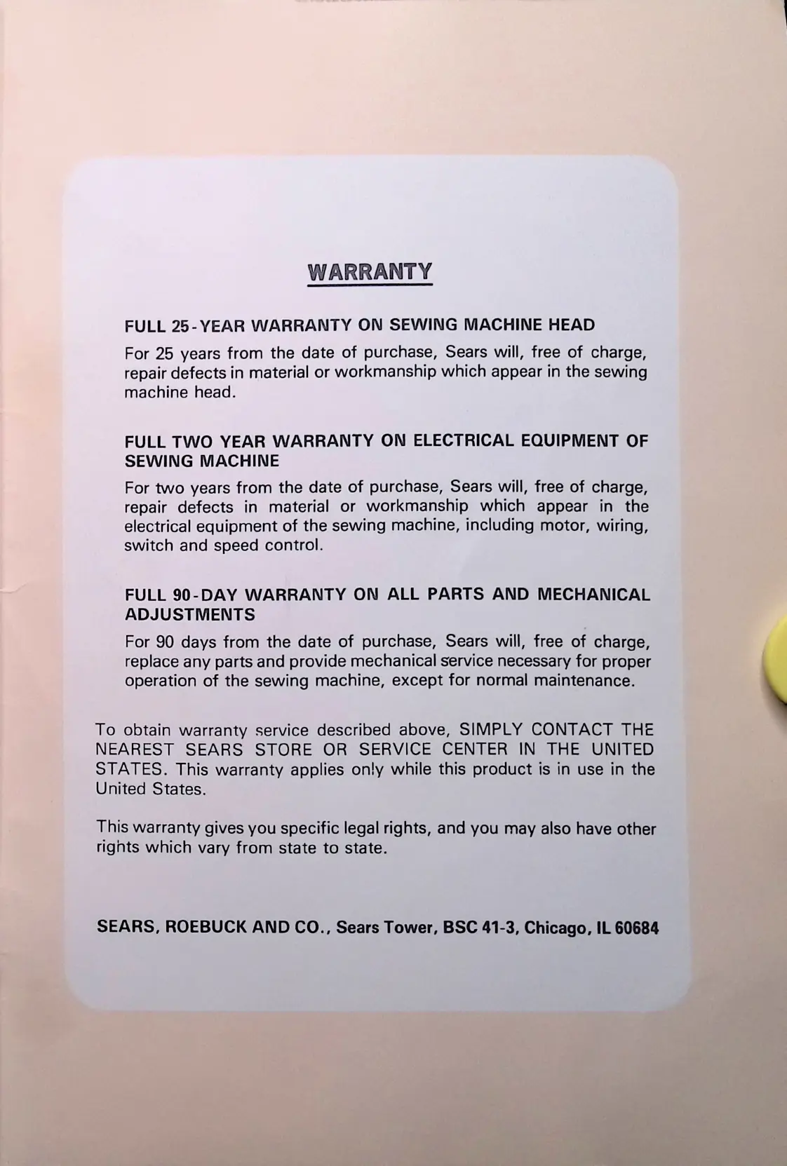 Kenmore 1350 - Warranty
