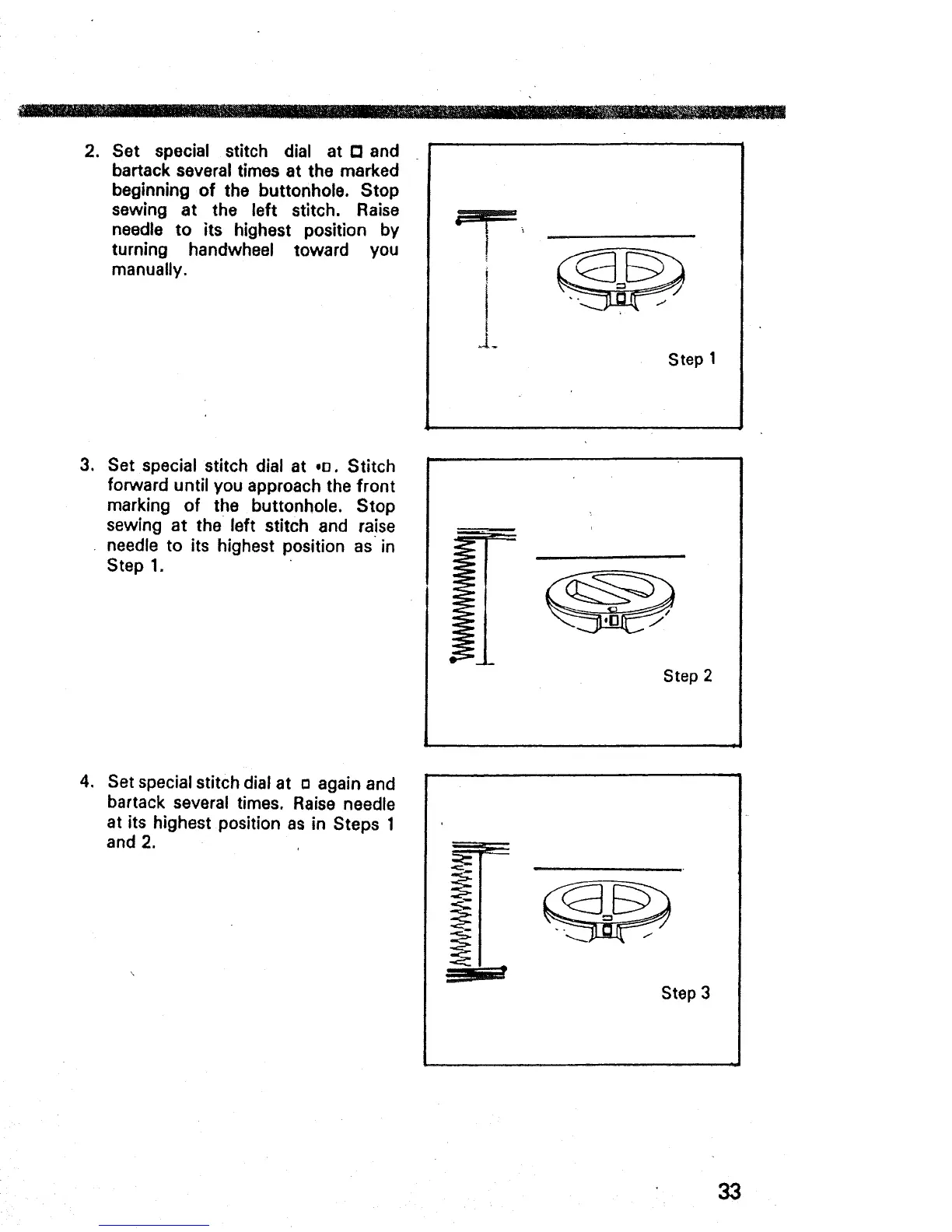 beginning of the buttonhole. Stop