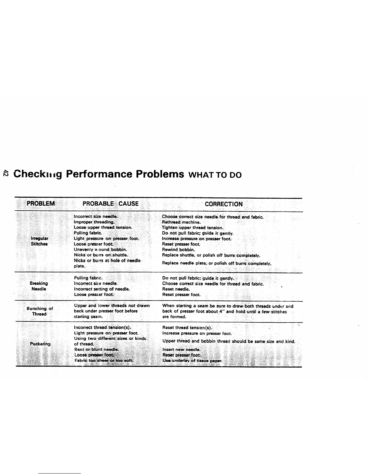 "''usingtw°_dztterent:::szzes:°r-'-_ :_ " kinc!_ii: Upper thread and bobbin thread should;be same size and kind.