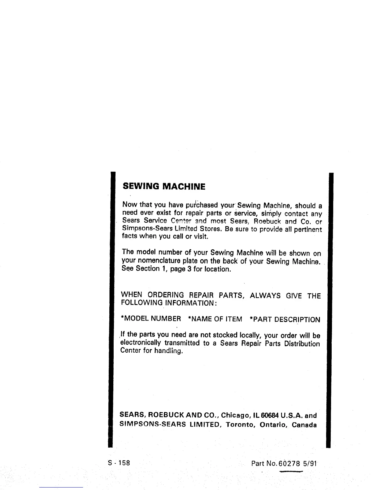 S-158 Part No.60278 5/91