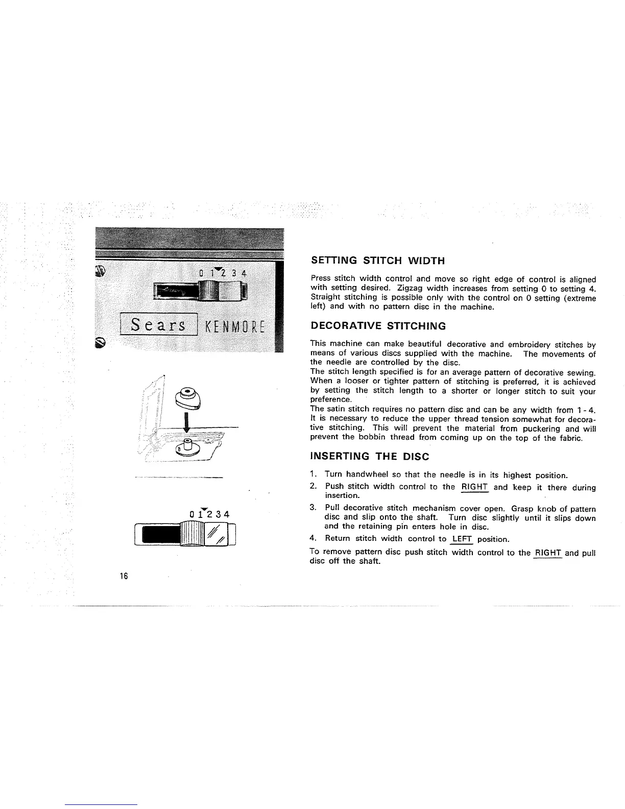 The satin stitch requires no pattern disc and can be any width from 1 - 4.