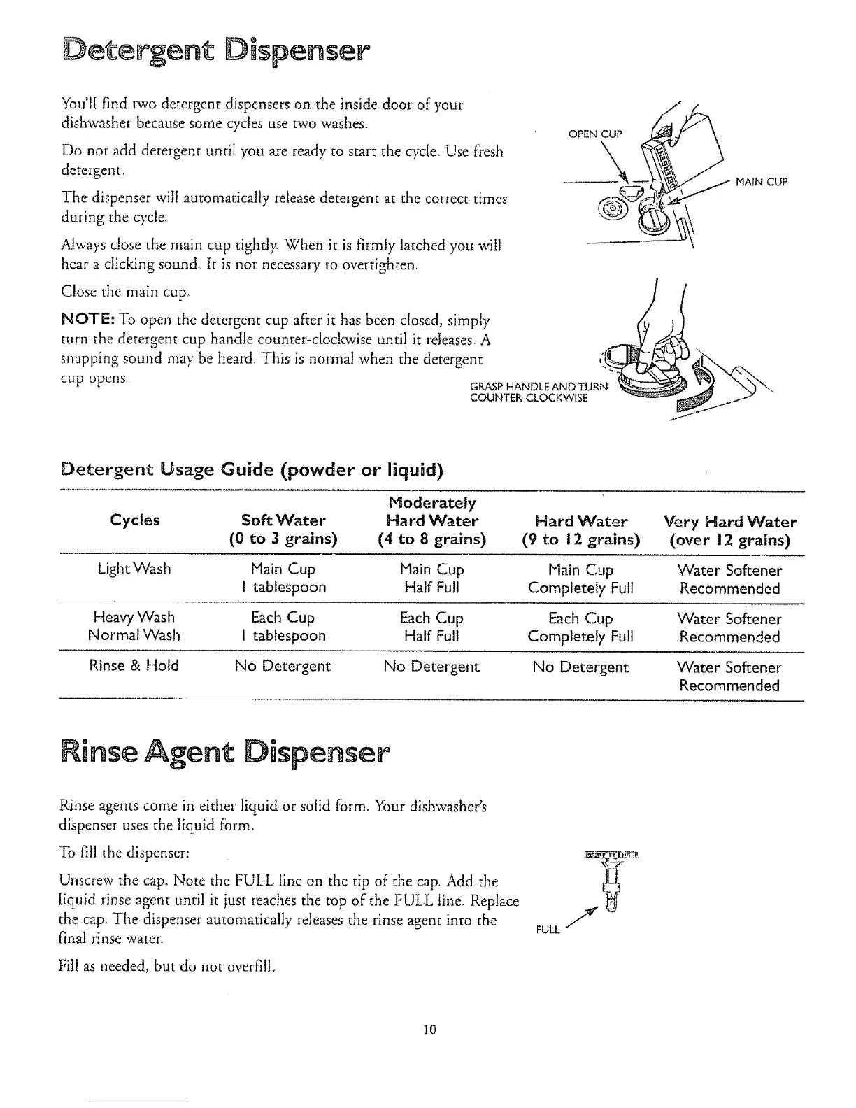 Rinse & Hold No Detergent No Detergent No Detergent Water Softener