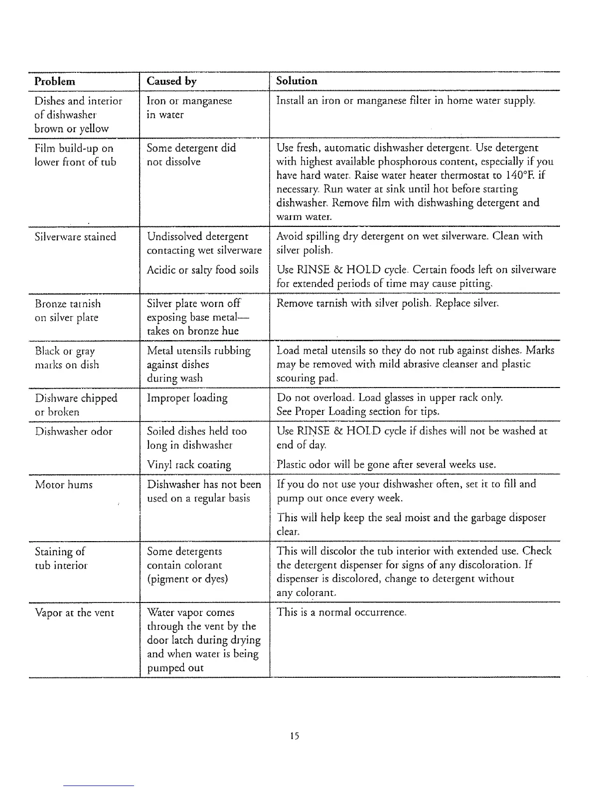 Use RINSE & HOLD cycle° Certain fi)ods left on silverware