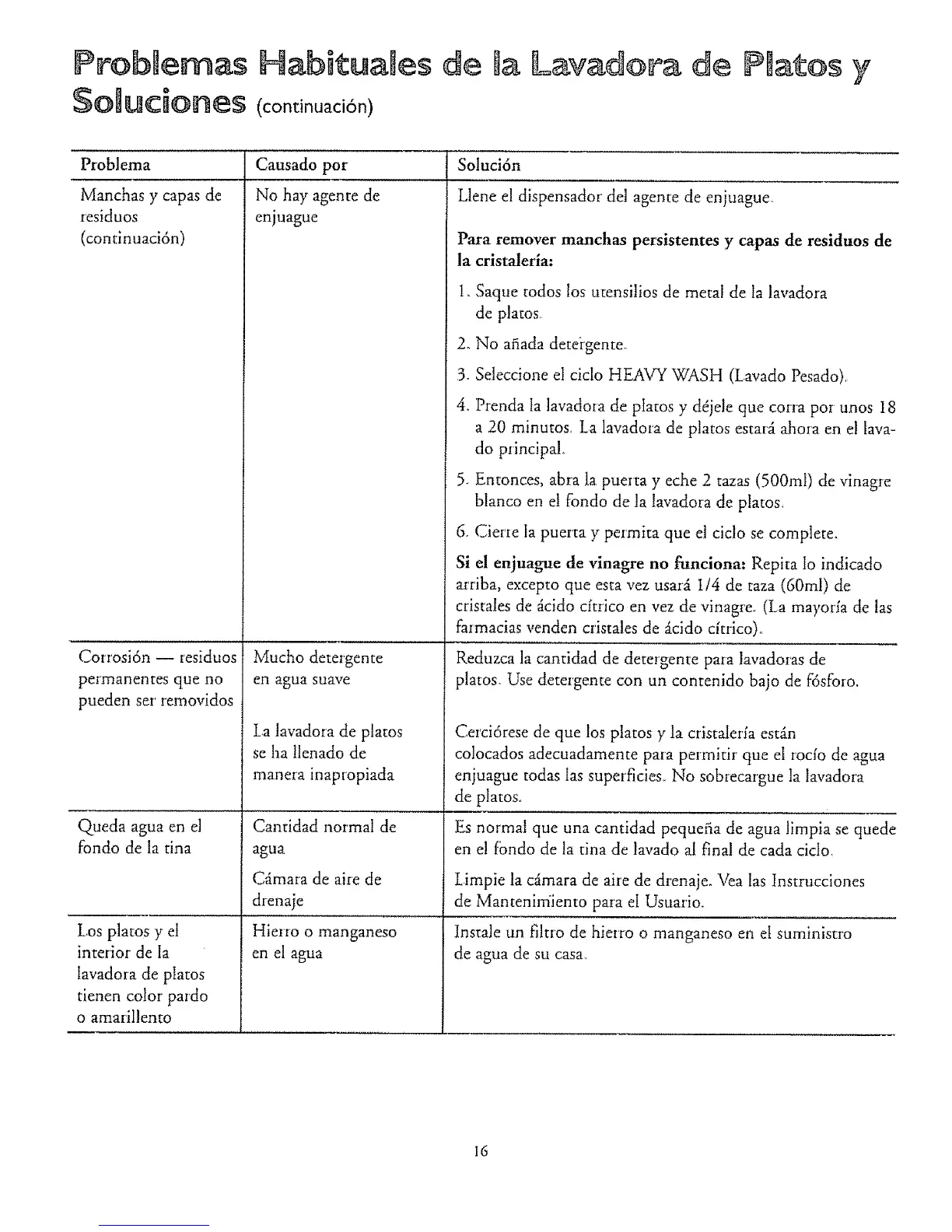 Si el enjuague de vinagre no funciona: Repita Io indicado