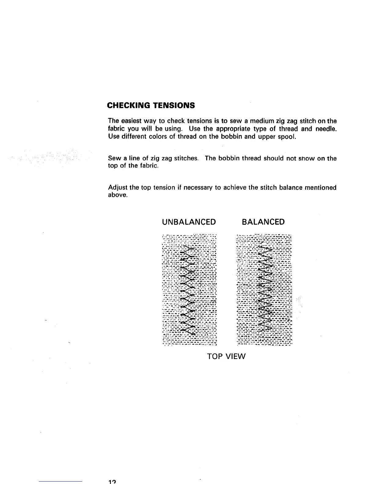 Adjust the top tension if necessary to achieve the stitch balance mentioned