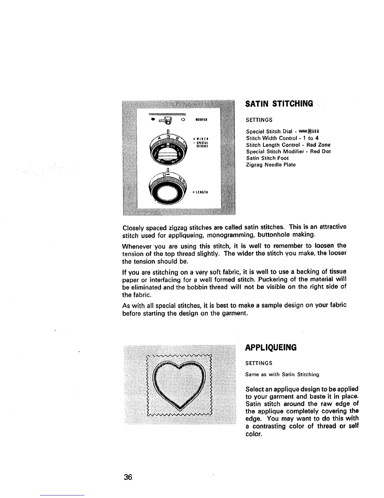 Closely spaced zigzag stitches are ca|led satin stitches. This is an attractive