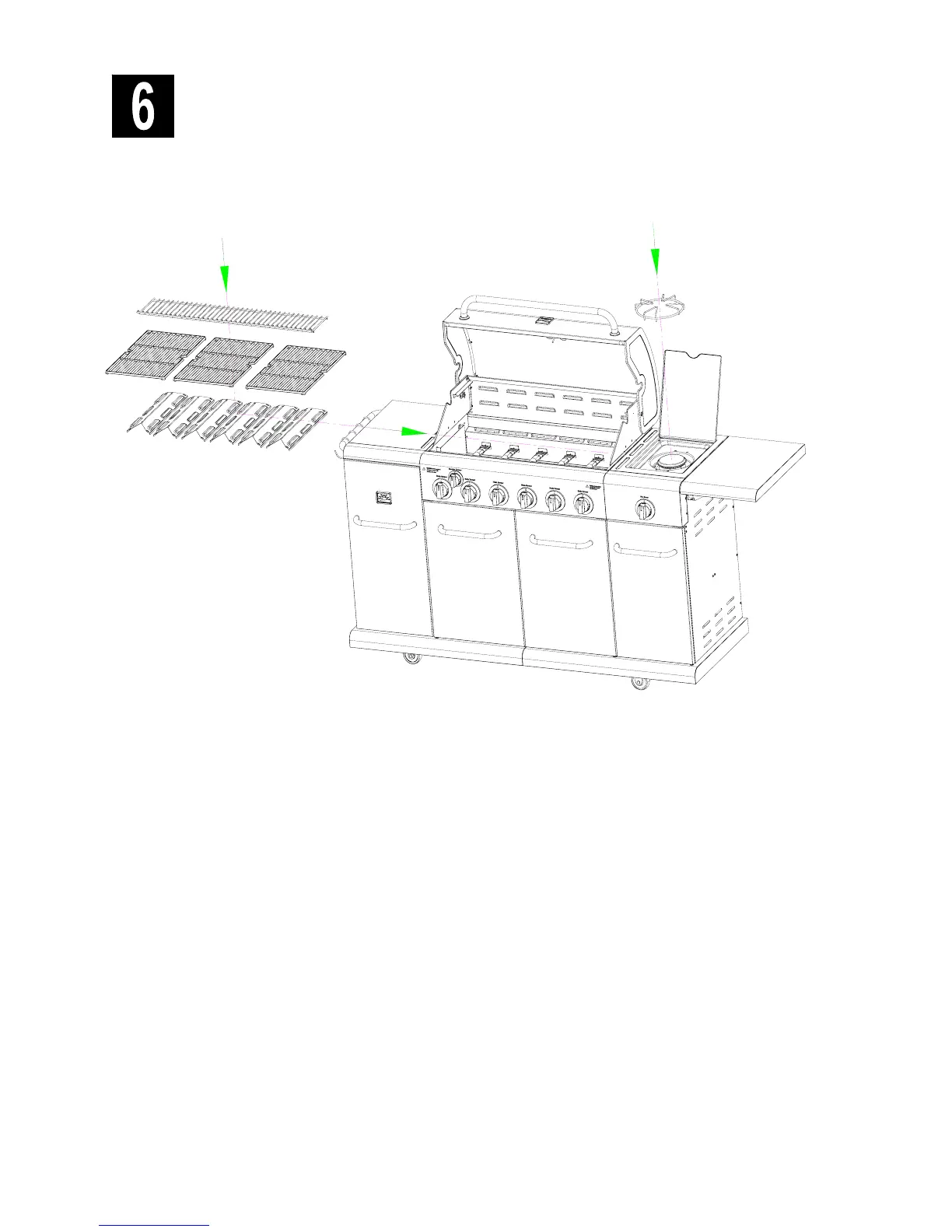 □ Place heat diffusers over main burners. The heat diffusers will fit in firebox in either direction. Fit