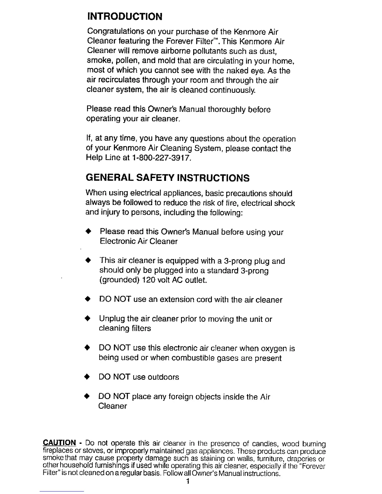CAUTION - Do not operate this air cleaner in the presence of candies, wood burning