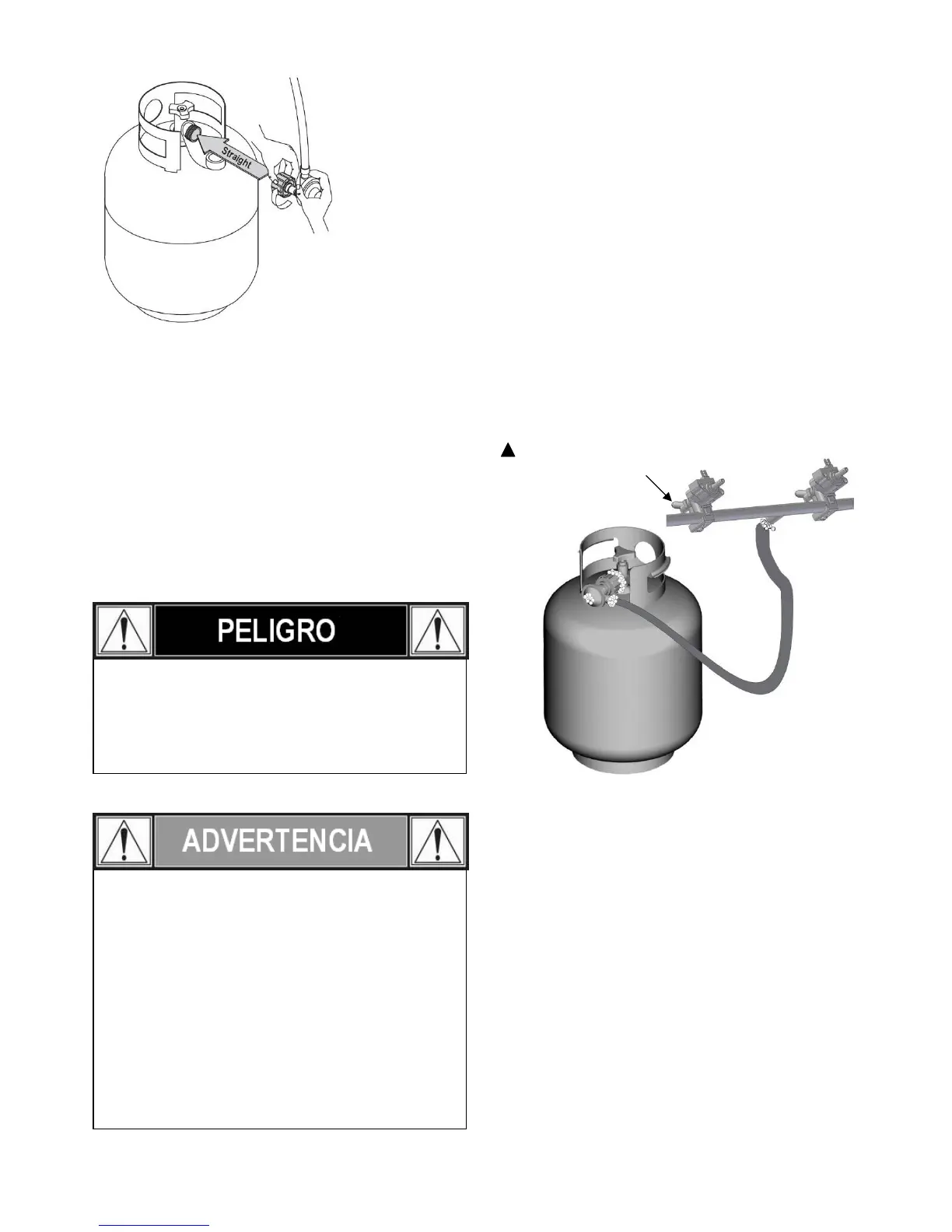 válvula del tanque de LP inmediatamente y vuelva a apretar