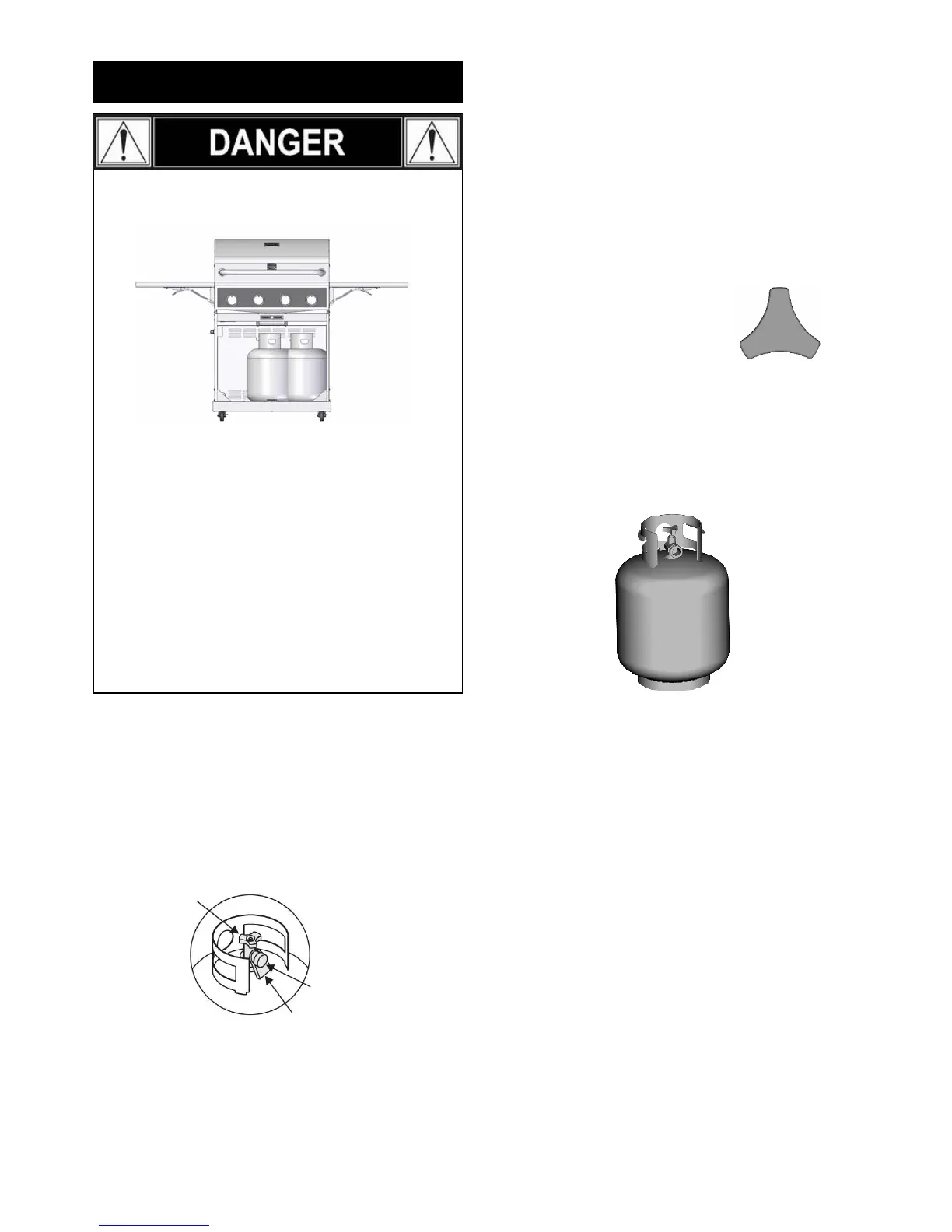 • To remove gas from LP cylinder, contact an LP dealer or call