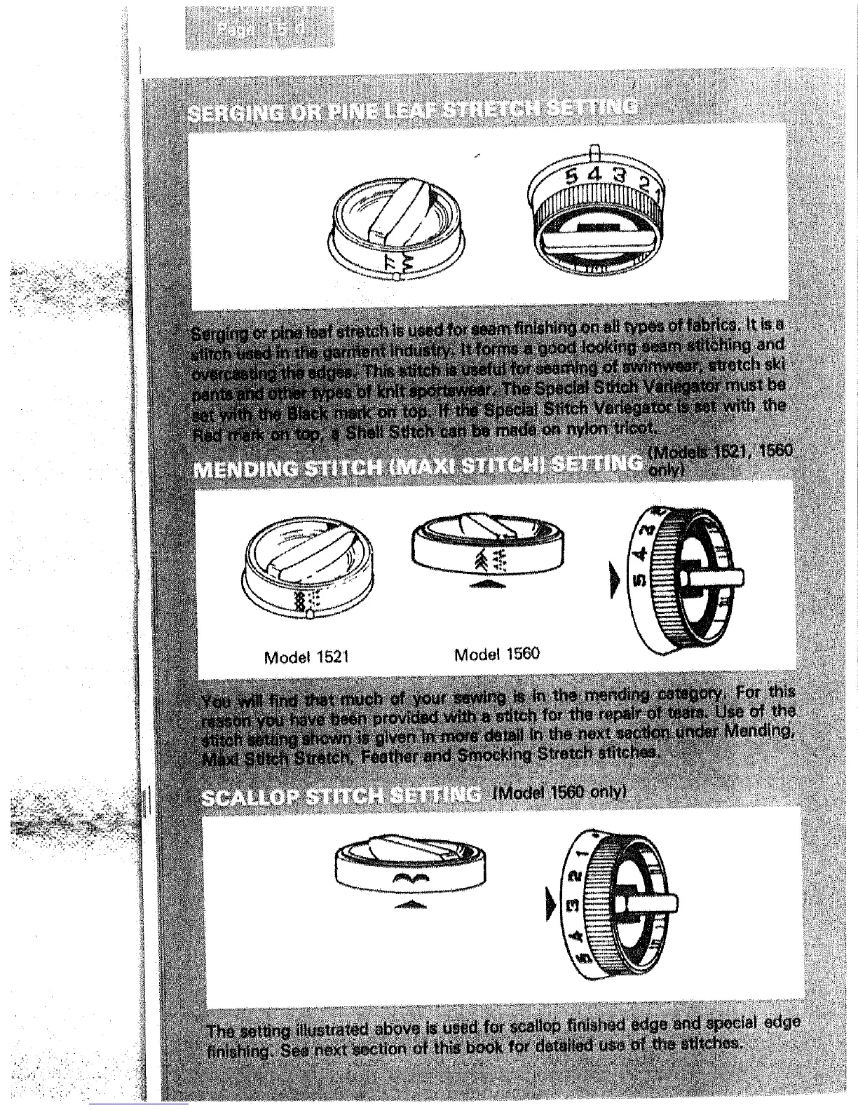 Kenmore 1521 - Serging or Pine Leaf Stretch Setting; Mending Stitch (Maxi Stitch) Setting; Scallop Stitch Setting