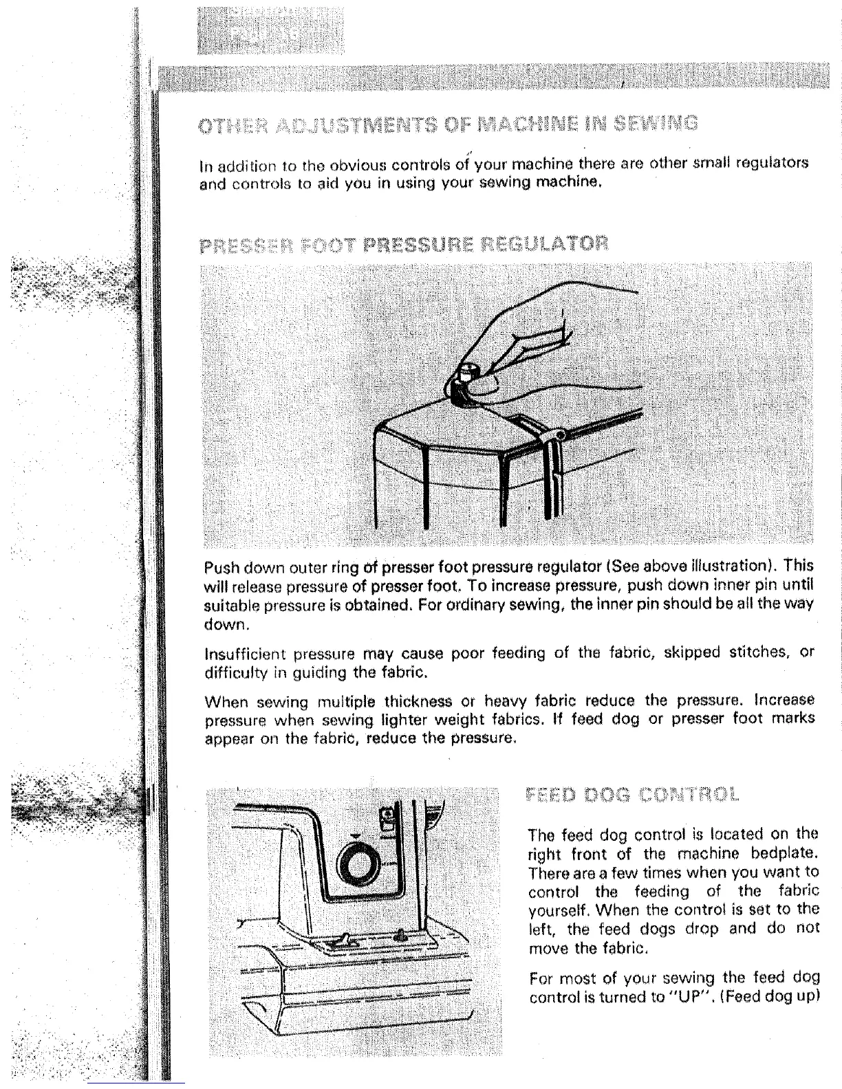 pressure when sewing lighter weight fabrics. If feed dog or presser foot marks