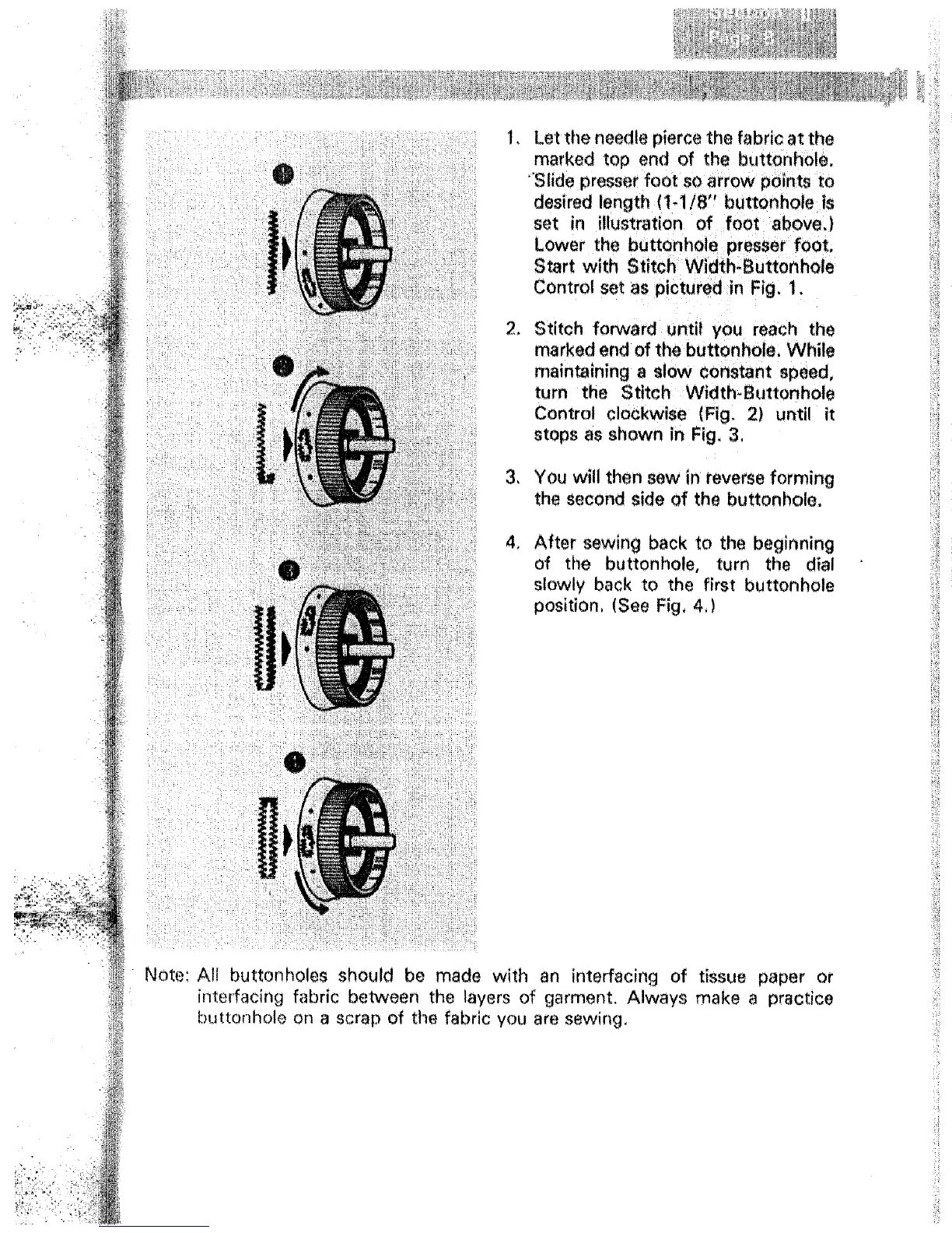 Note: All buttonholes should be made with an interfacing of tissue paper or