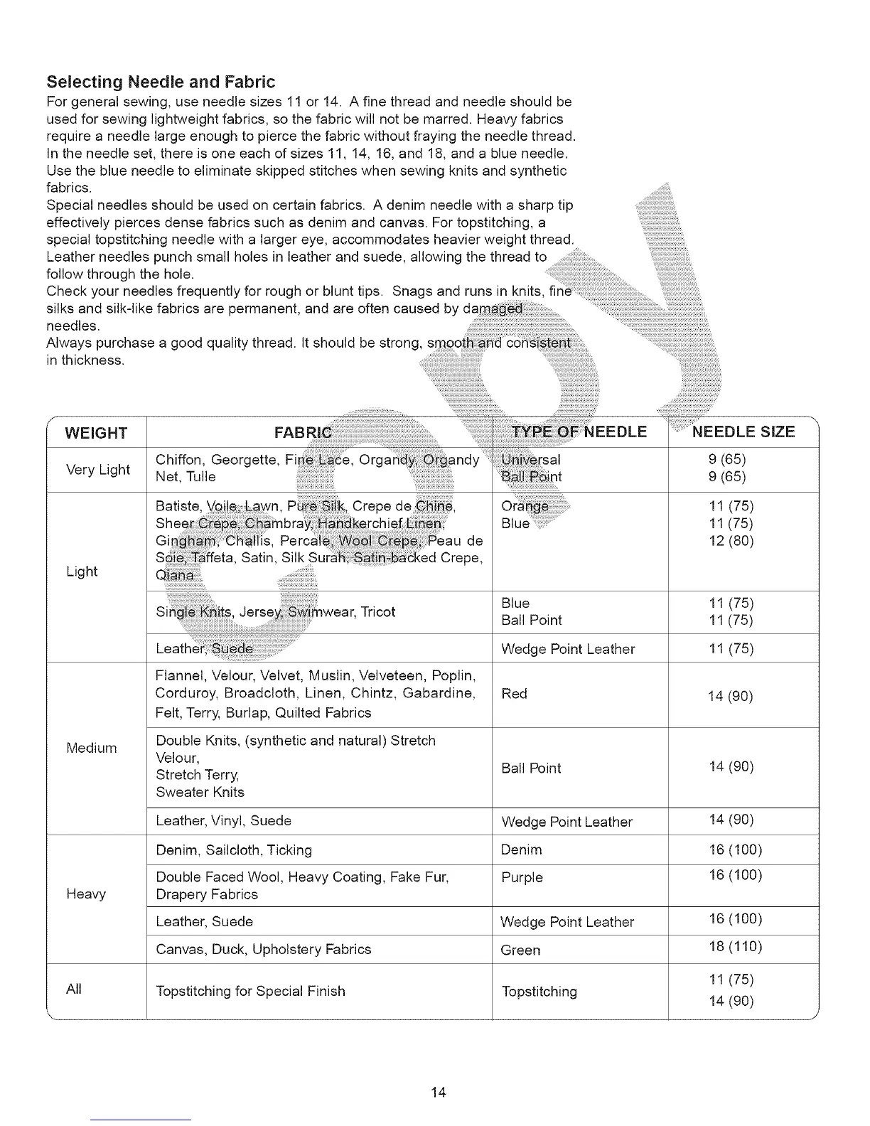 Selecting Needle and Fabric