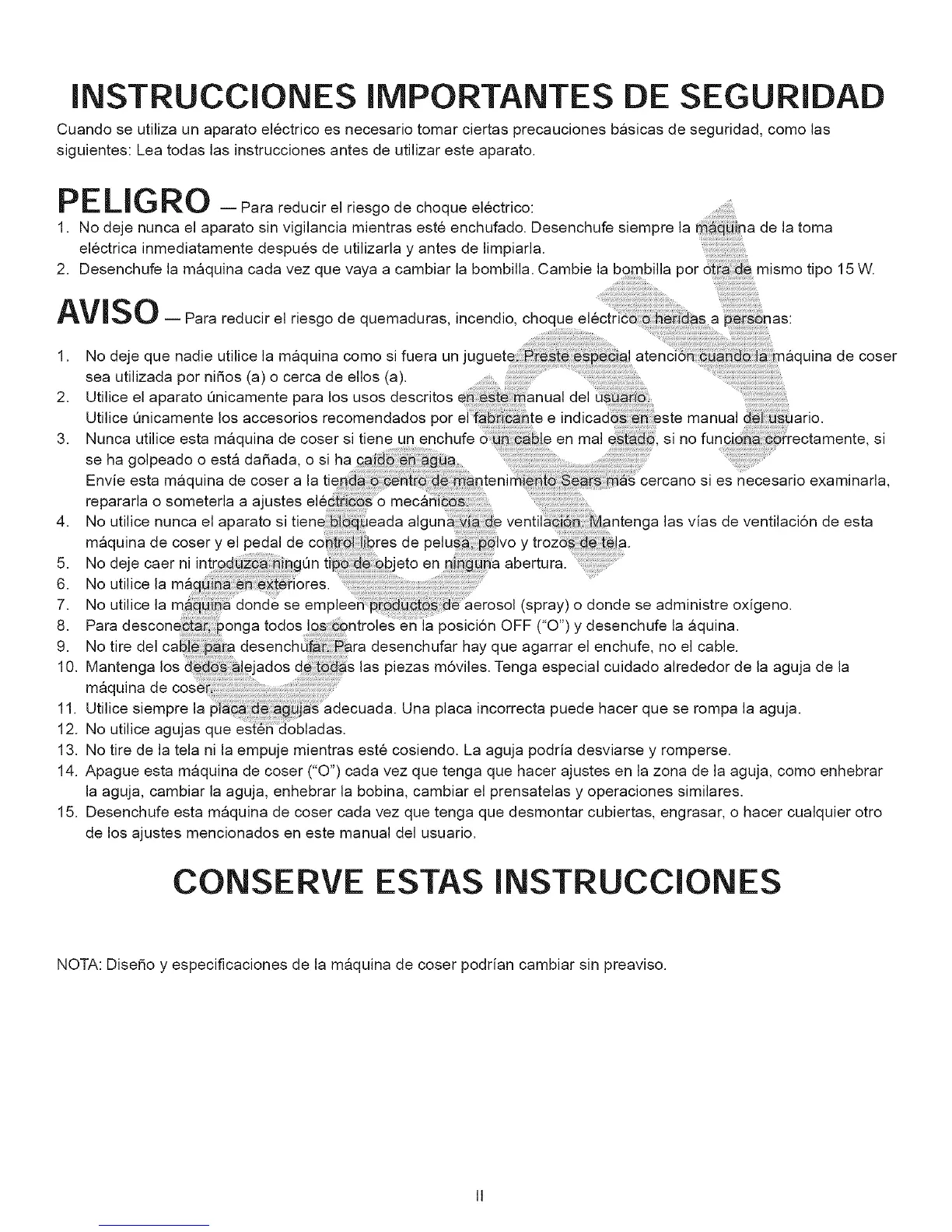 NOTA: Disefio y especificaciones de la maquina de coser podrian cambiar sin preaviso.