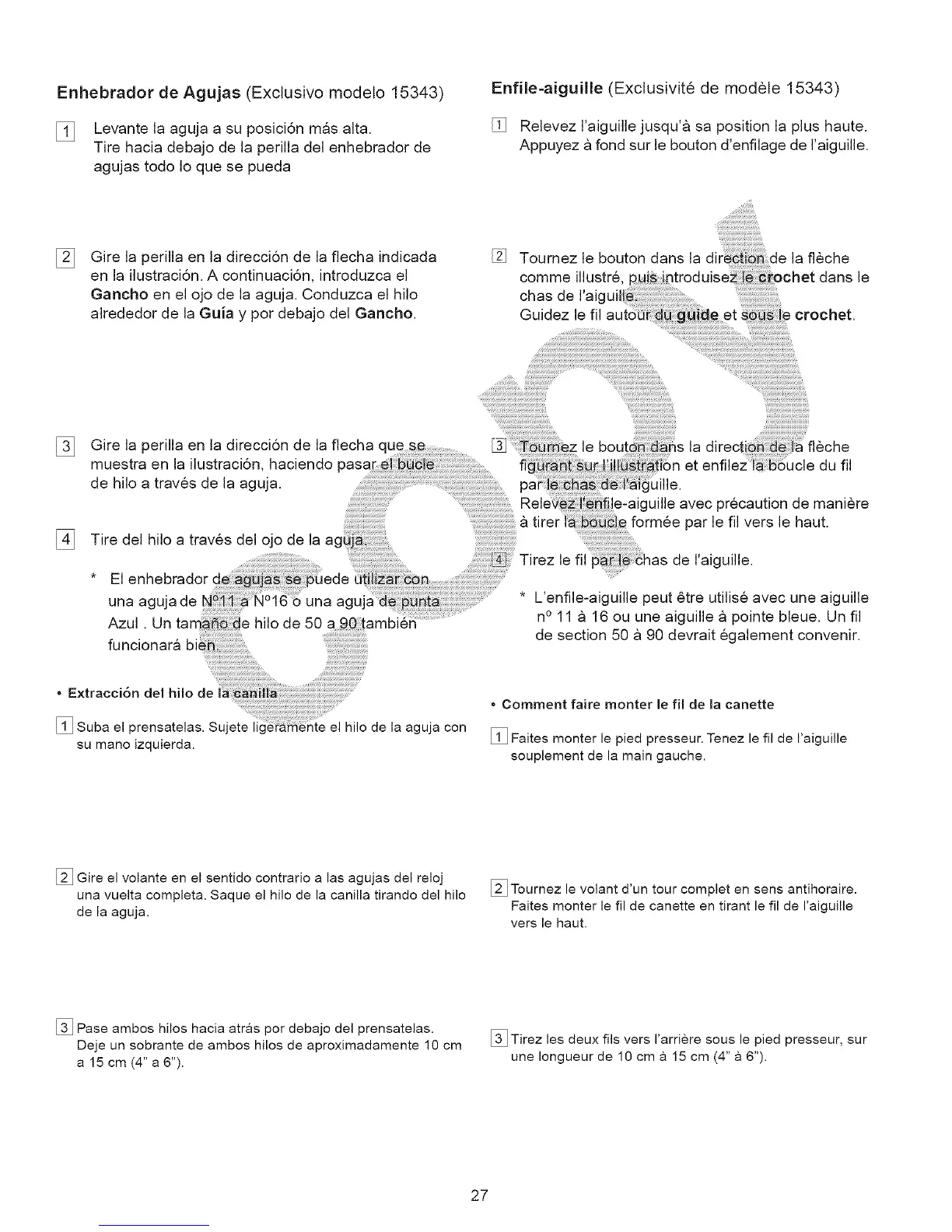 , Extracci6n del hilo de • Comment faire monter le fil de la canette