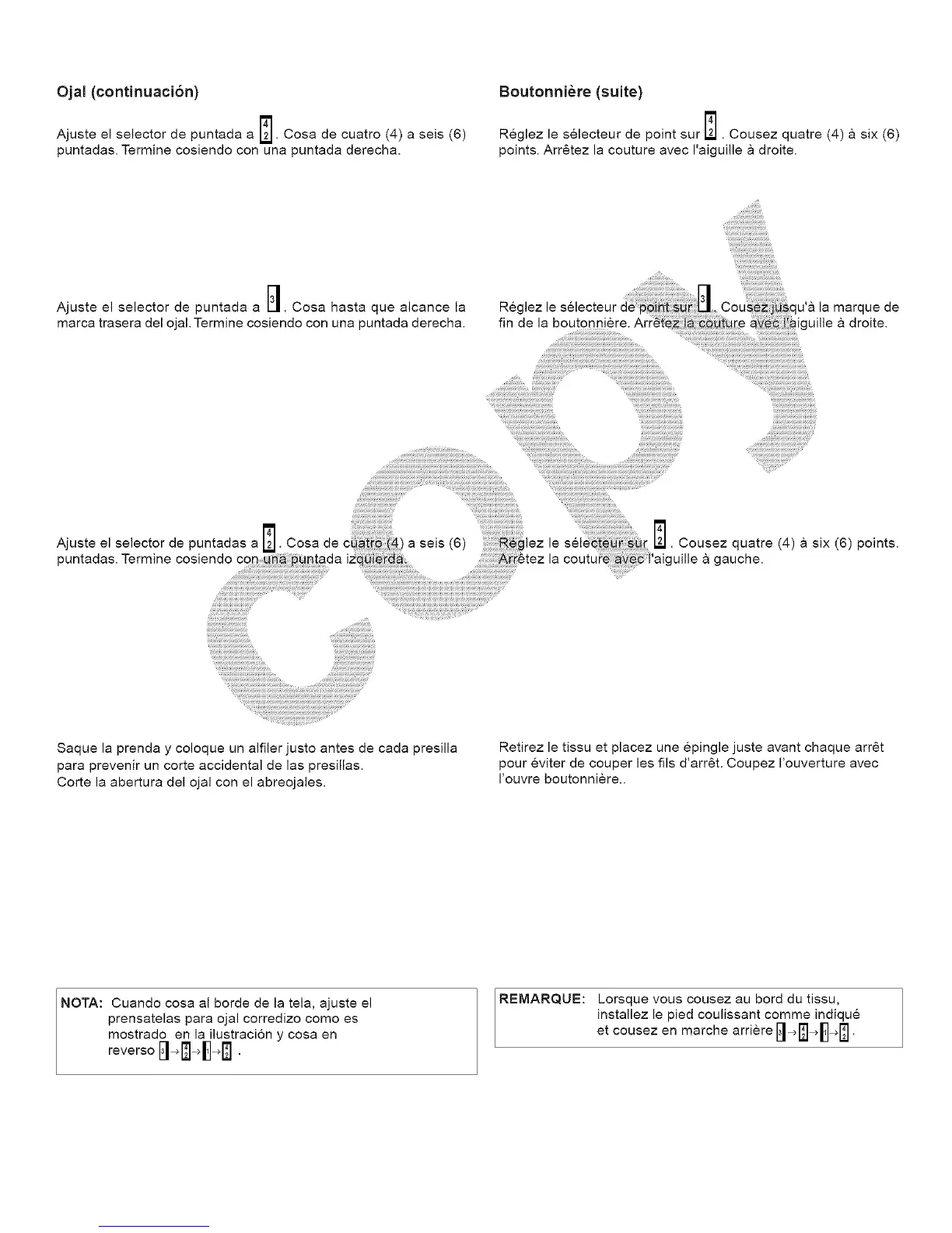 marca trasera del ojal. Termine cosiendo con una puntada derecha.
