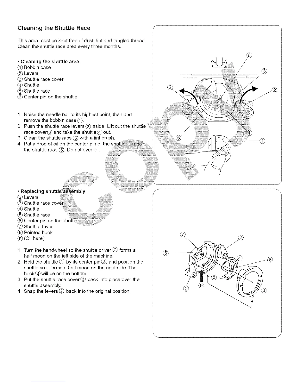 the shuttle race (_. Do not over oil.