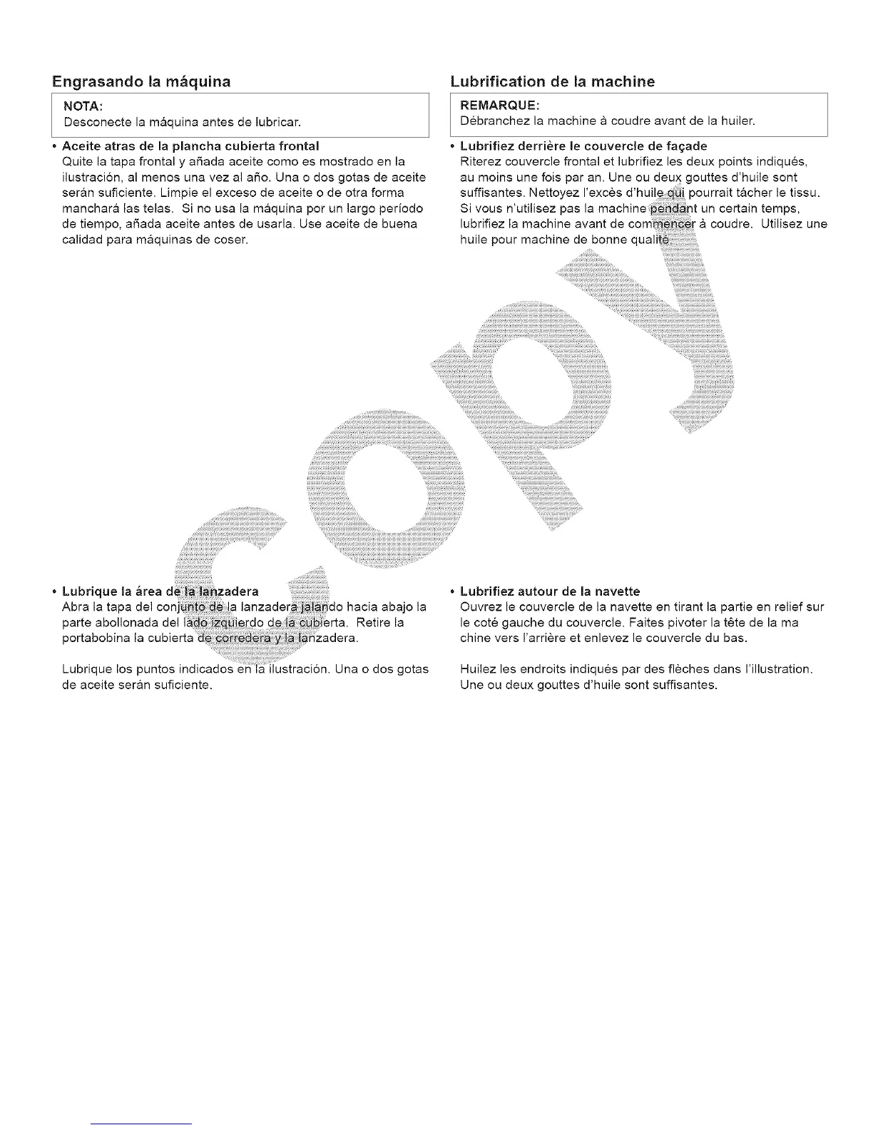Lubrique los puntos indicados Una o dos gotas Huilez les endroits indiques par des fleches dens I'illustration.