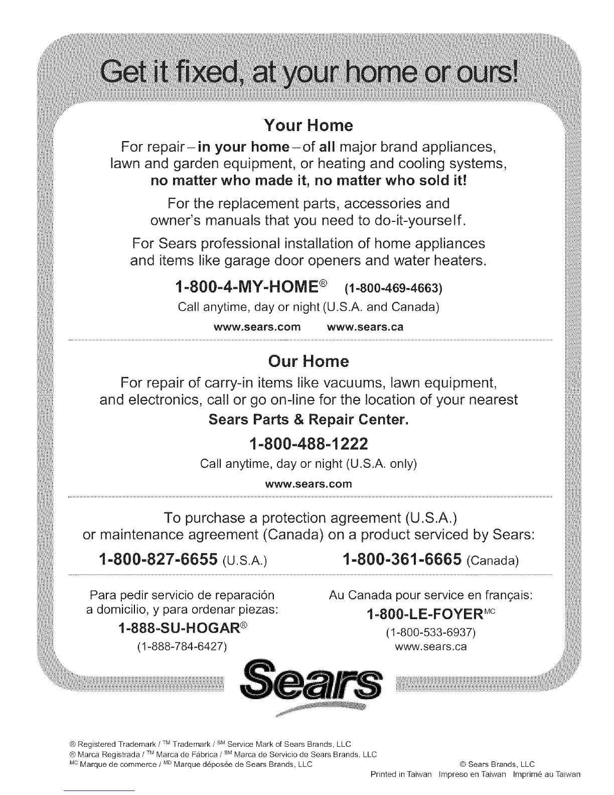 @ Marca Registrada / TMMarca de Fabrica / SMMarca de Servicio de Sears Brands, LLC