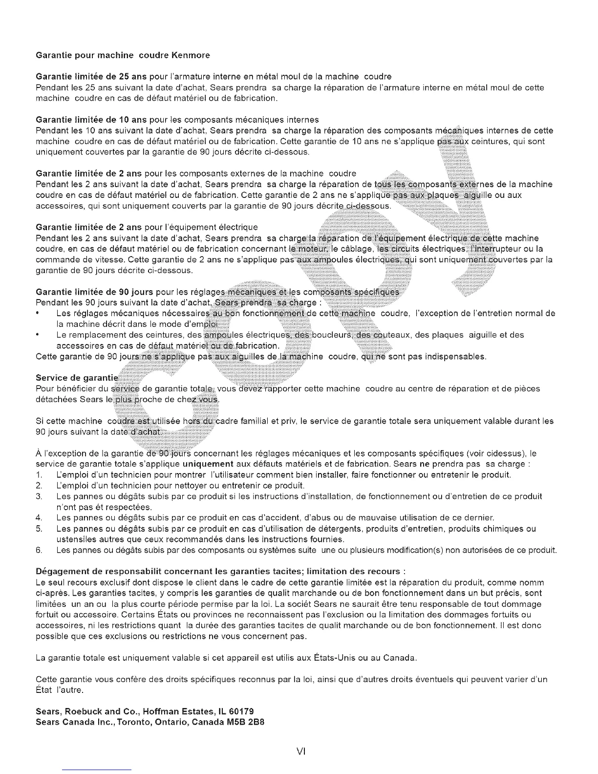 Pendant les 2 ans suivant la date d'achat, Sears prendra sa charge la reparation de f_ 9mposan! exi_rnes de la machine