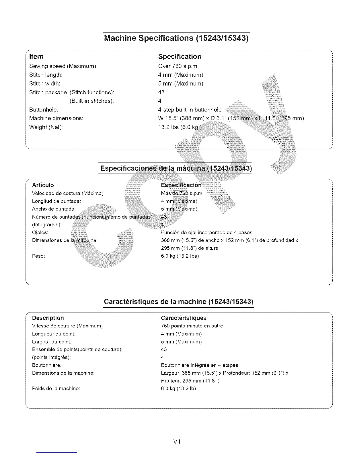 Caract_ristiques de la machine (15243/15343)