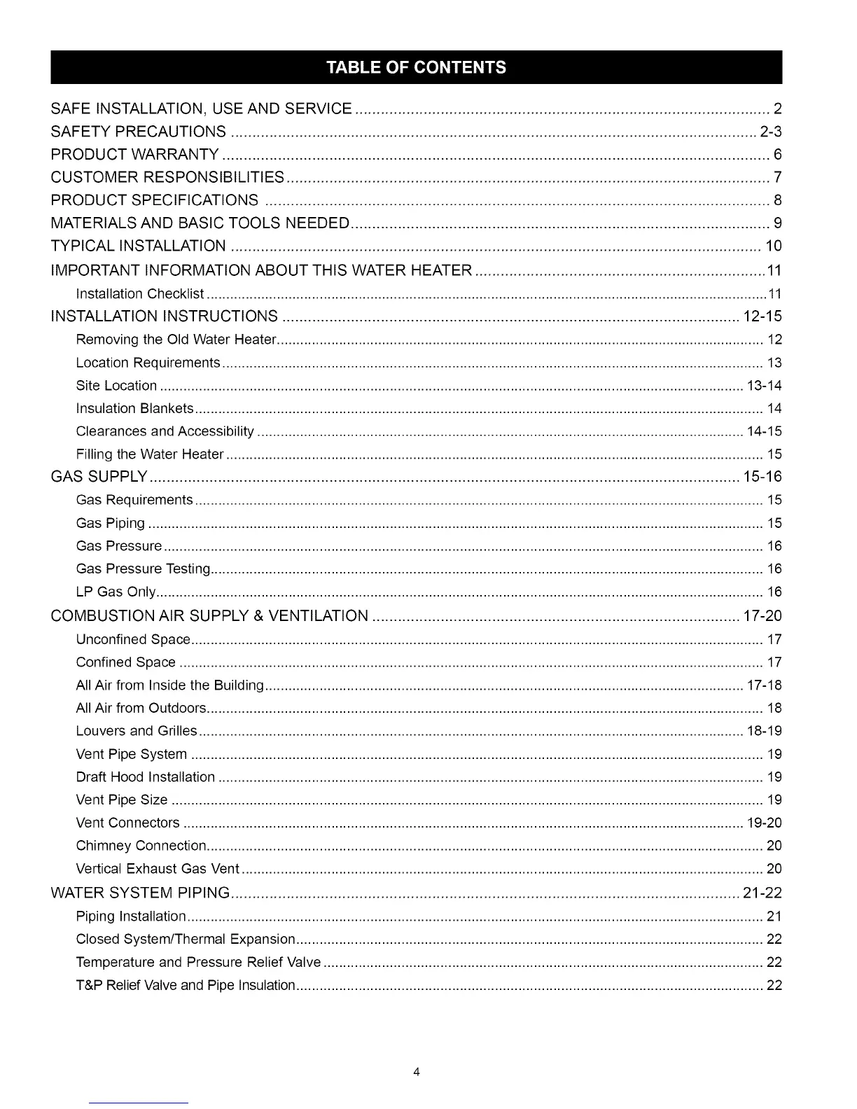 IMPORTANT INFORMATION ABOUT THIS WATER HEATER .................................................................... 11