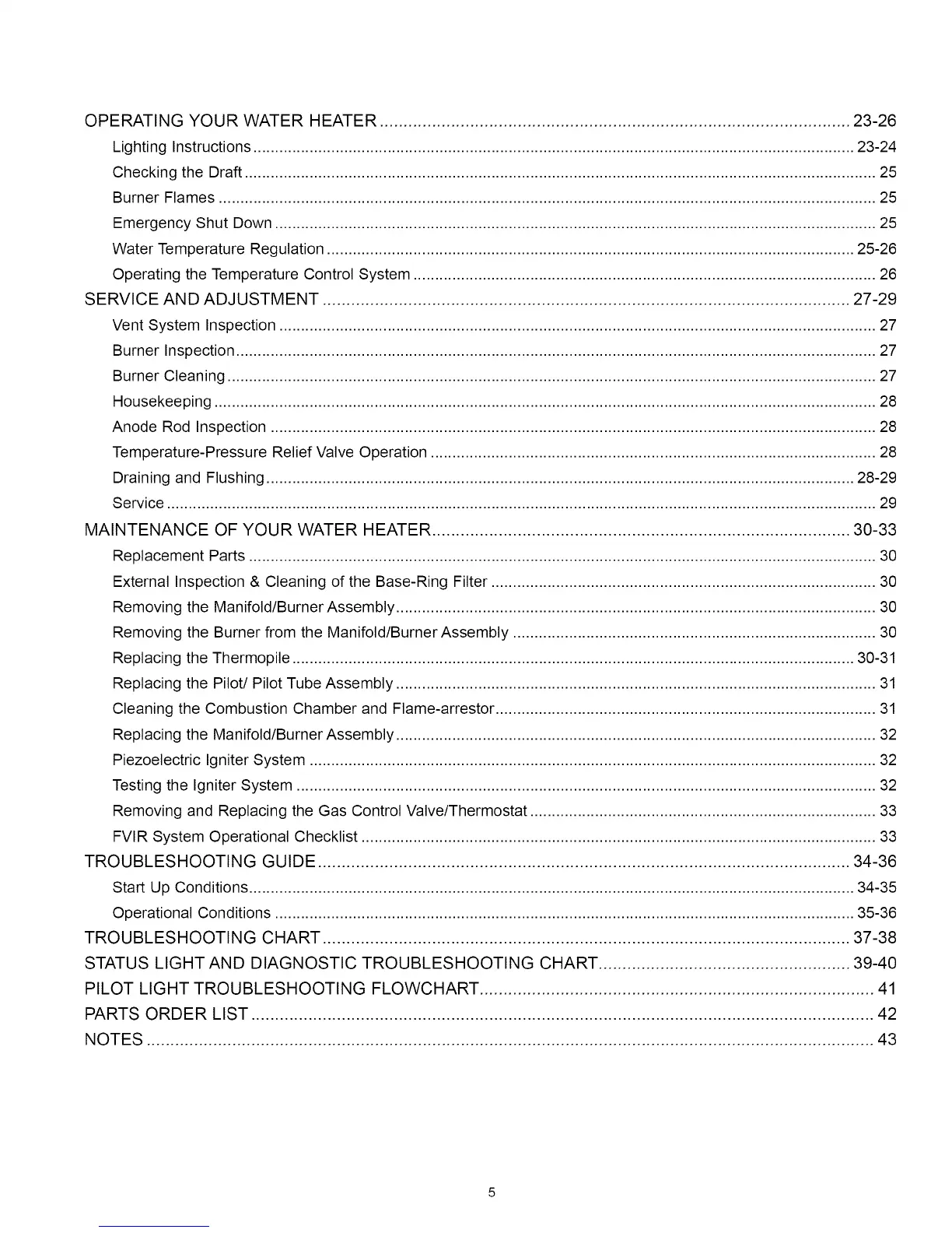 OPERATINGYOURWATERHEATER...................................................................................................23-26
