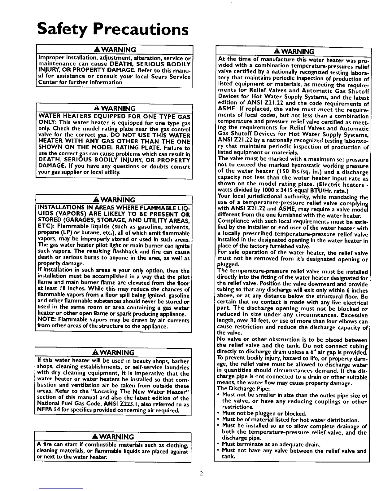 of the water heater (150 Ibs./sq. in.) and a discharge