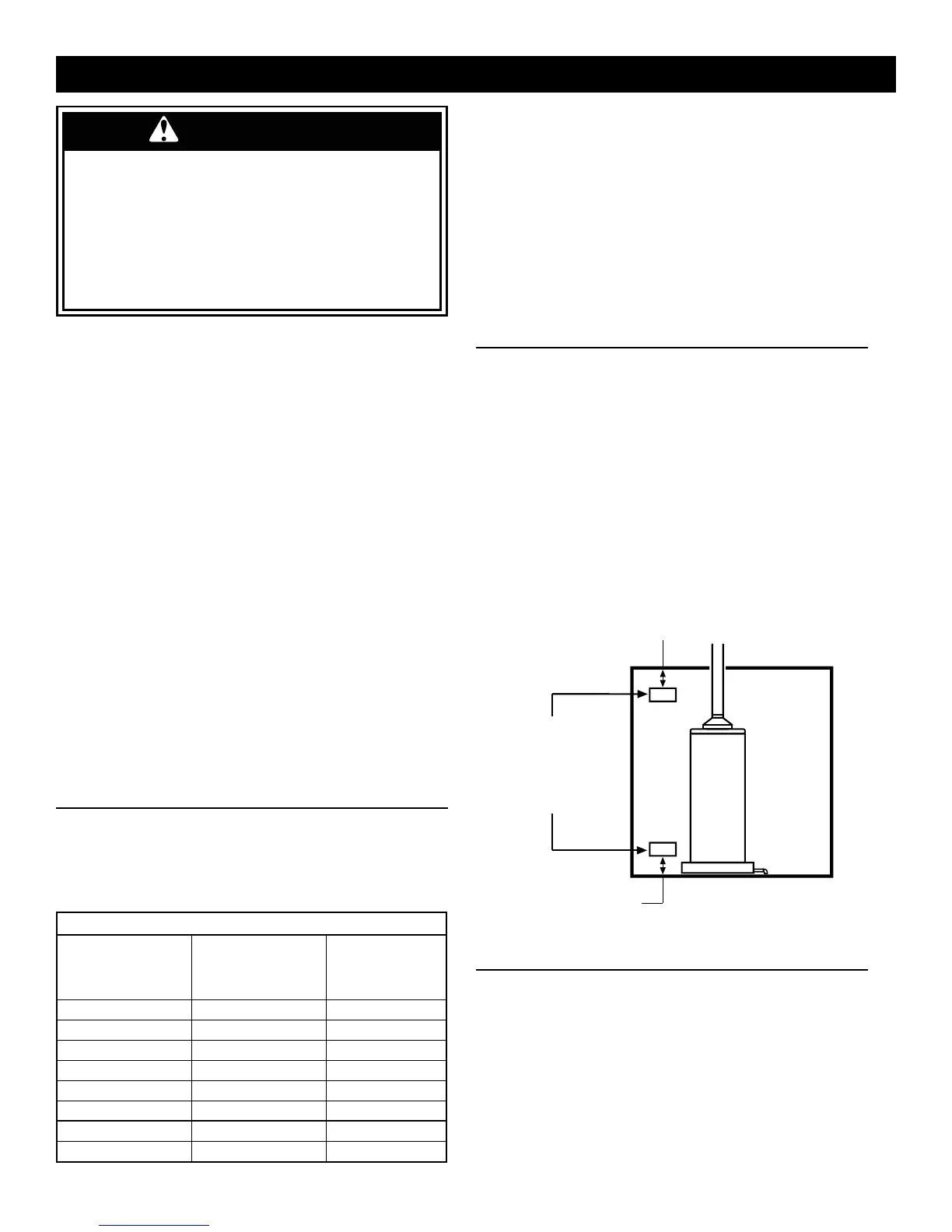 air requirements to the water heater. Areas that are being