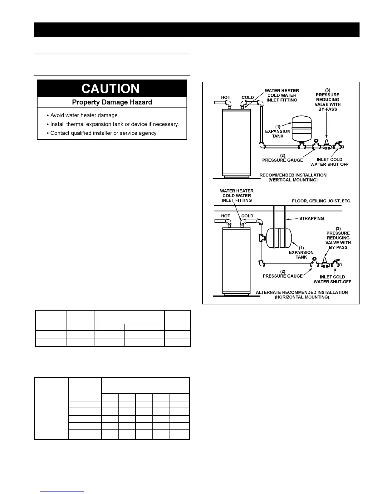 NOTE: Expansion tanks are pre-charged with a 40 psi air