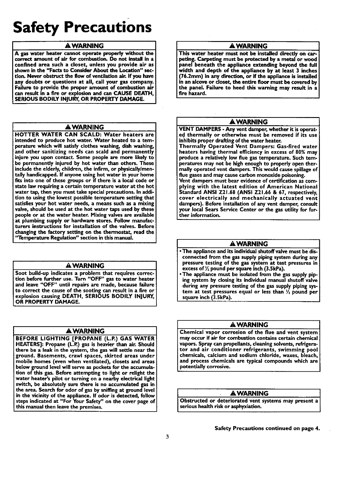 Safety Precautions continued on page 4.