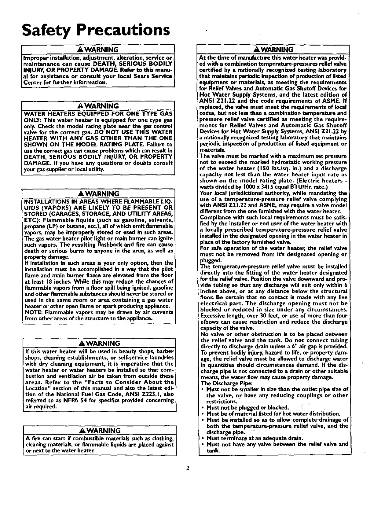 of the water heater (150 Ibs./sq. in.) and a discharge
